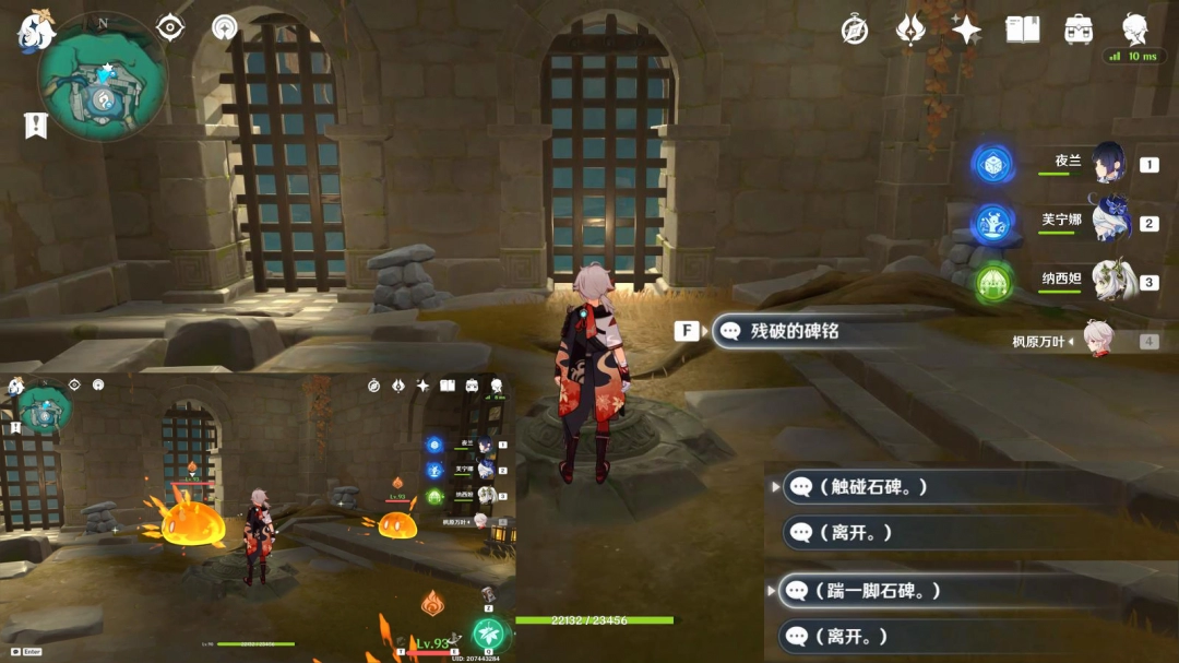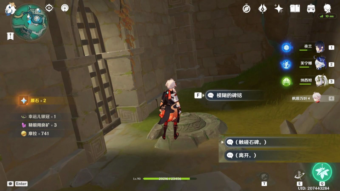交互“残破的碑铭”,选择“(触碰石碑。/踹一脚石碑。)”
