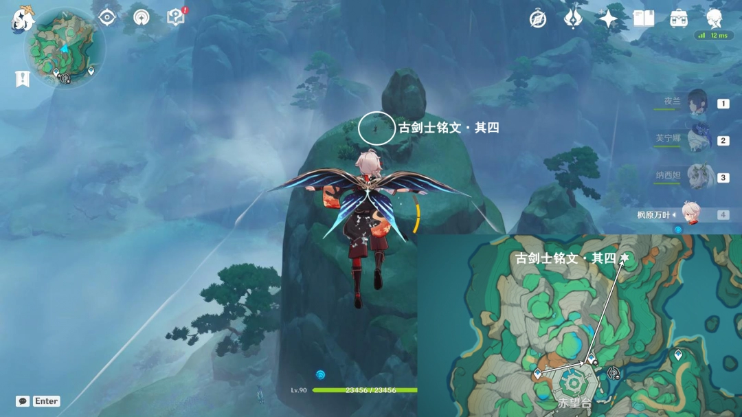 ▶在赤望台边缘,往地图的东方向飞,前往山顶;