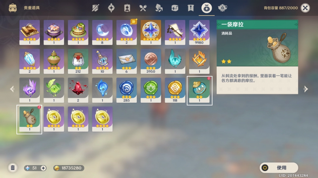 完成任务,获得「一袋摩拉」,建议收藏勿使用