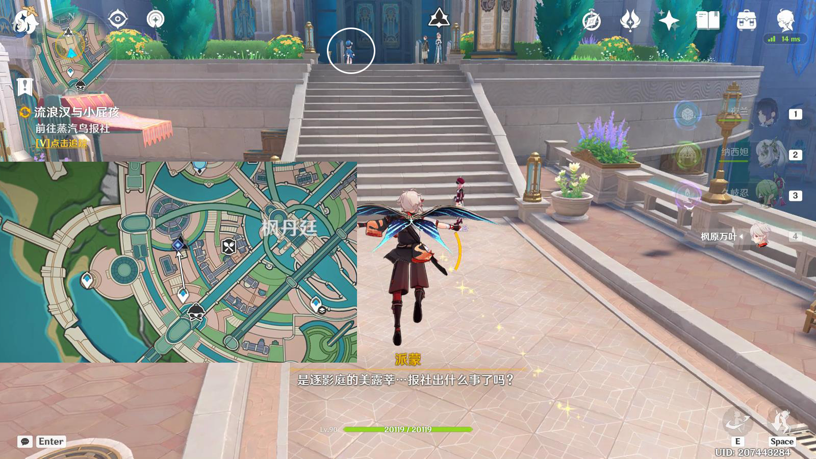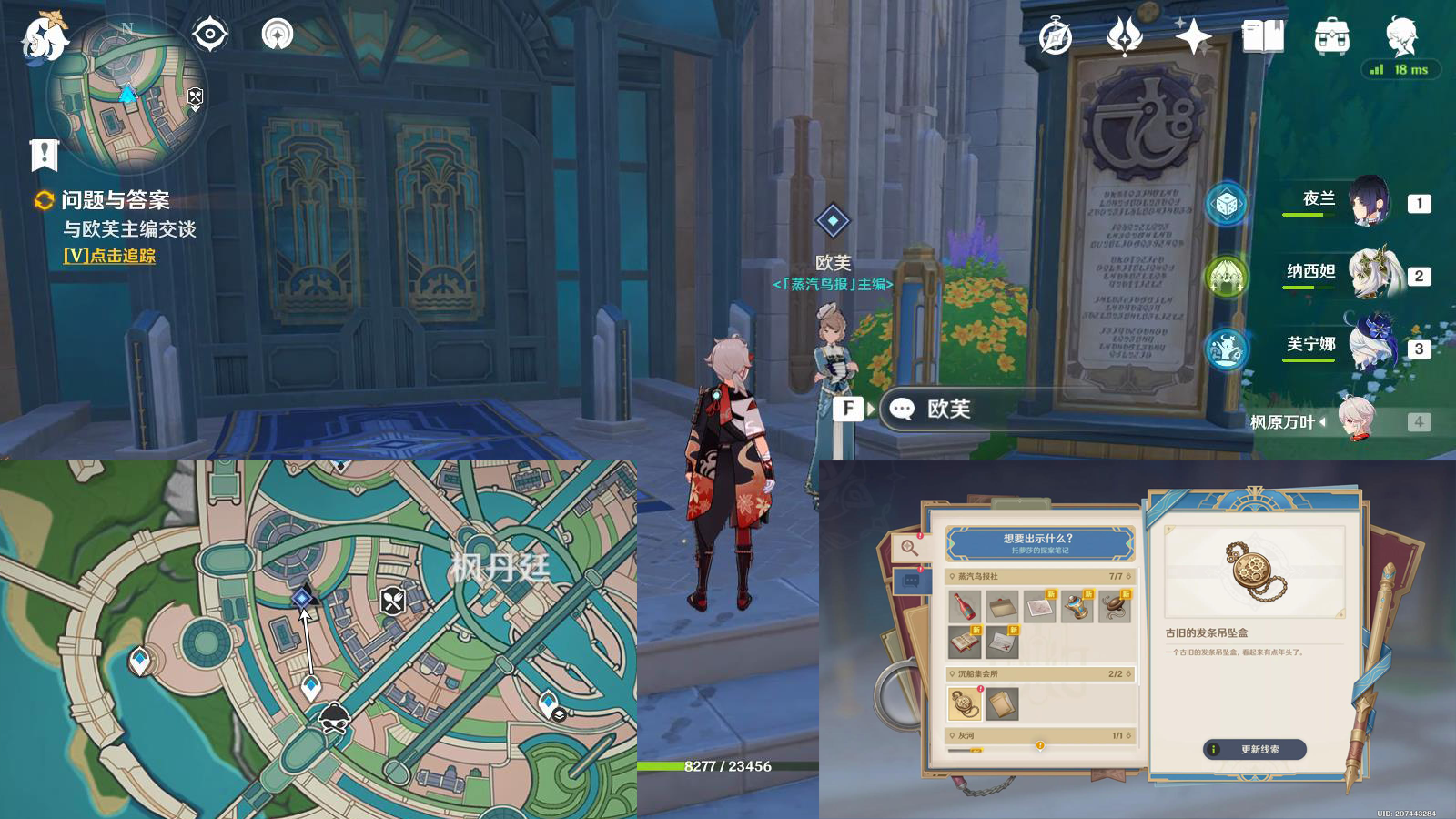 传送枫丹廷西南方向锚点,前往蒸汽鸟报社,与托箩莎对话