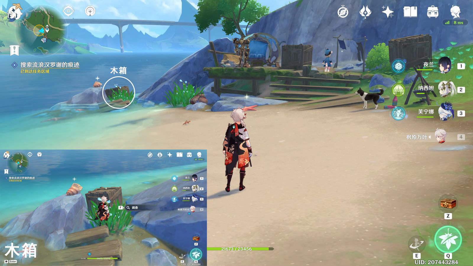 往地图的西南方向走,在海滩草丛边,摧毁木箱
