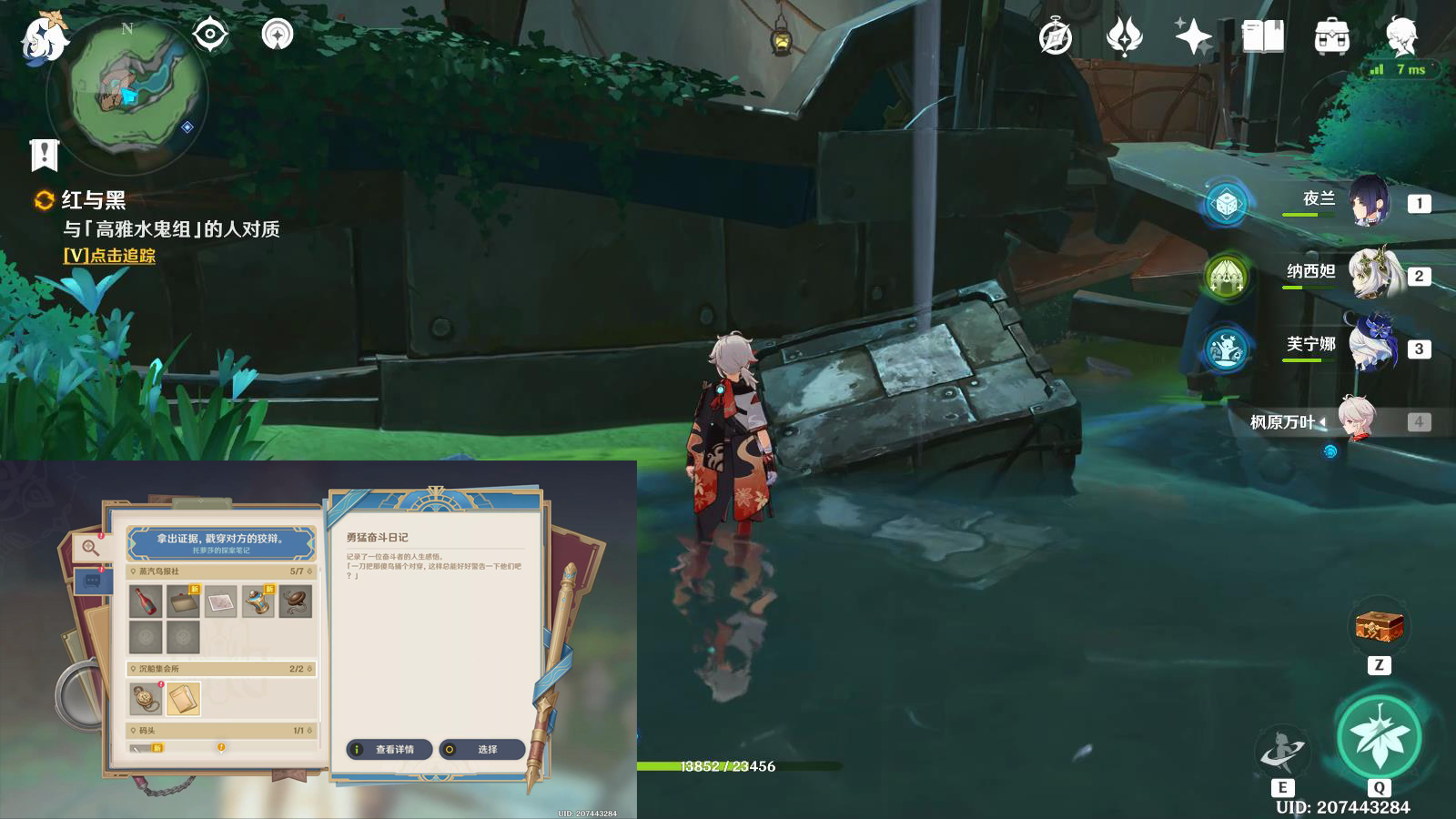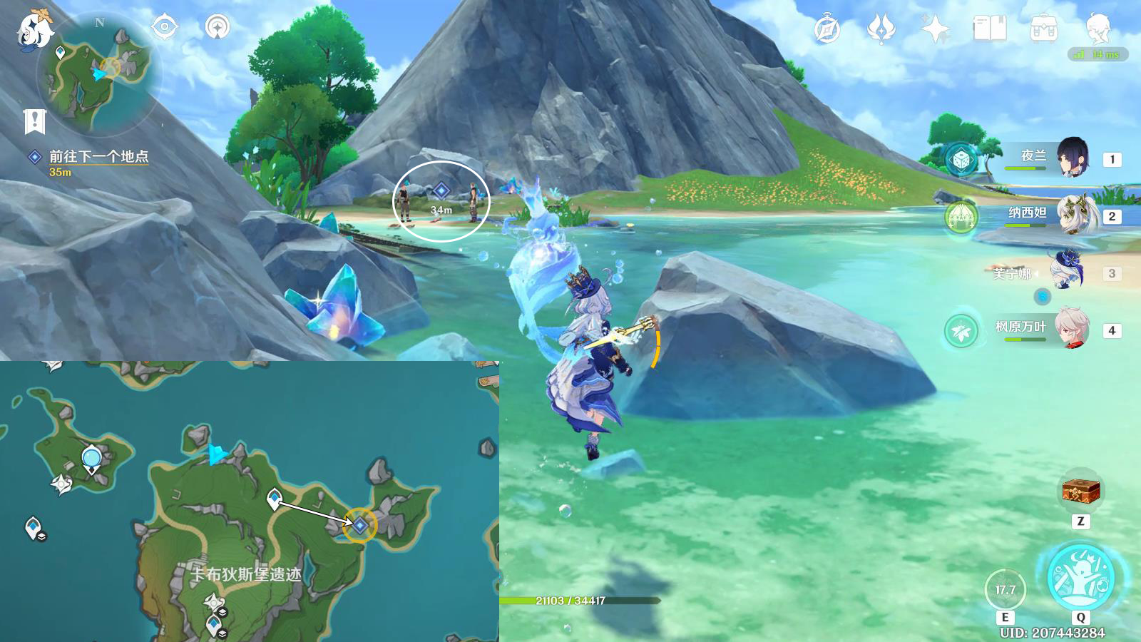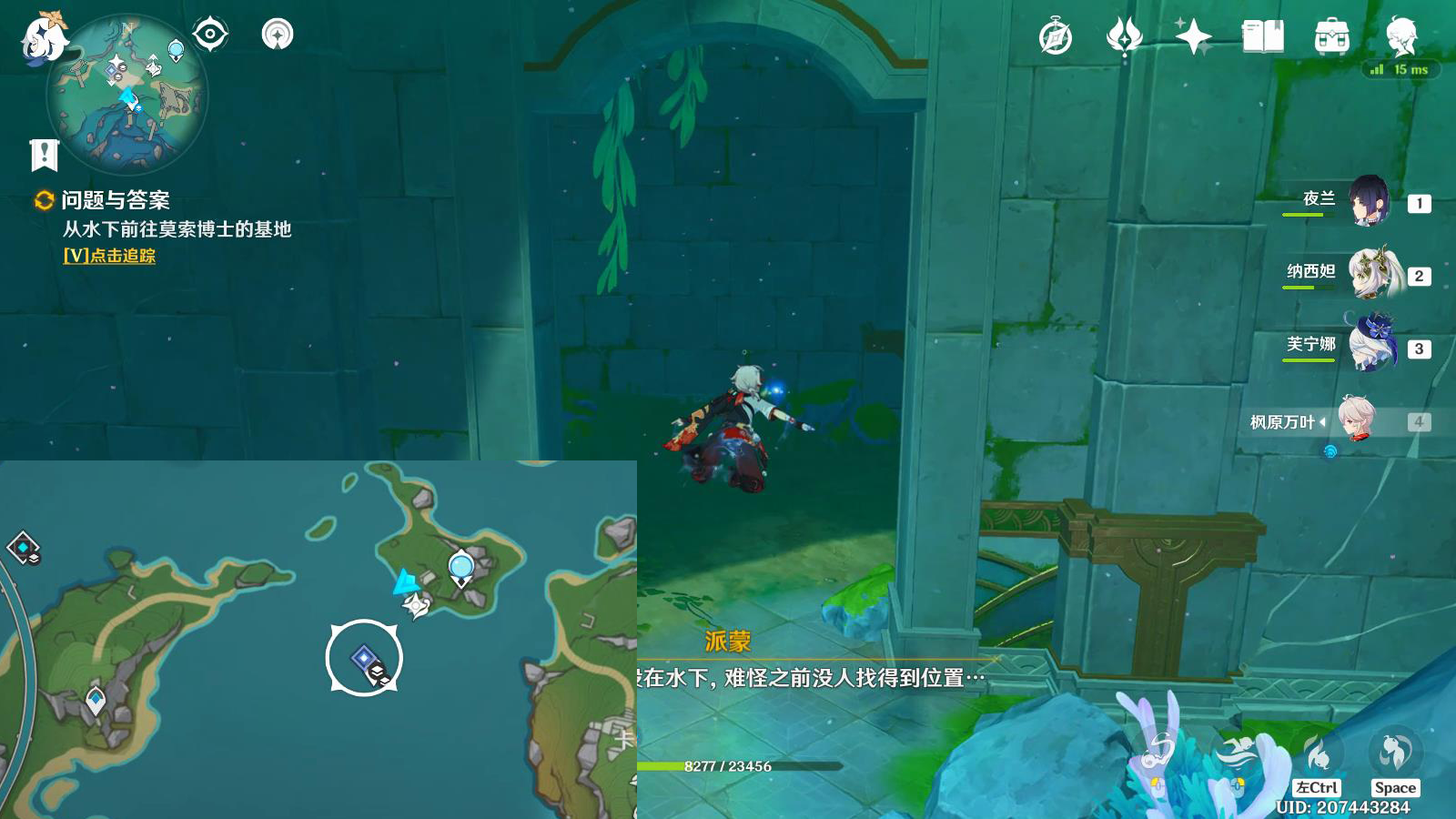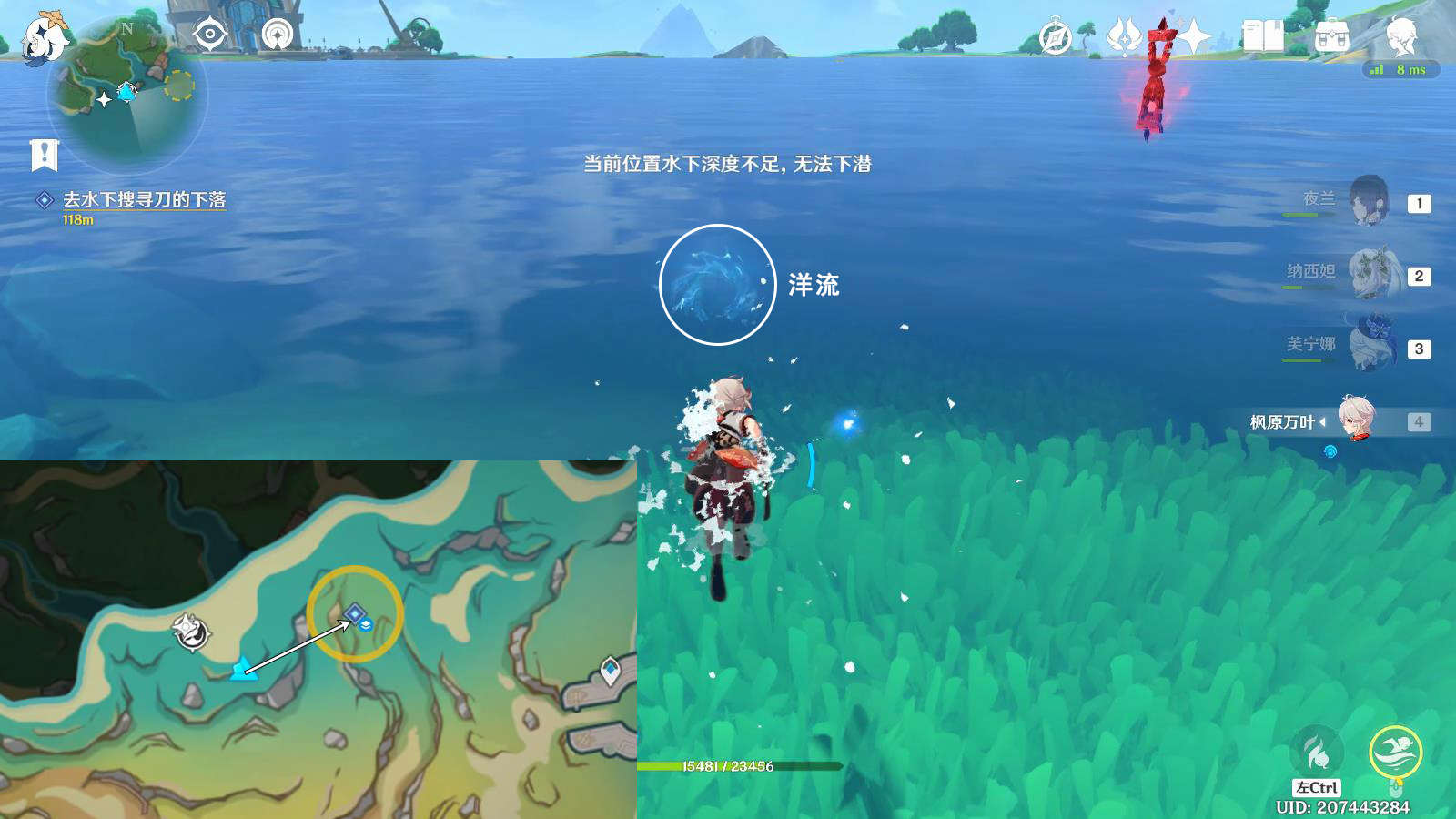 传送卡布狄斯堡遗迹西方向水下锚点,往地图的北方向游,进入遗迹