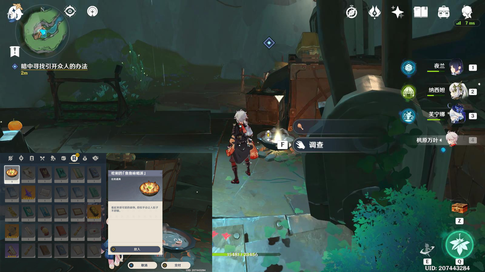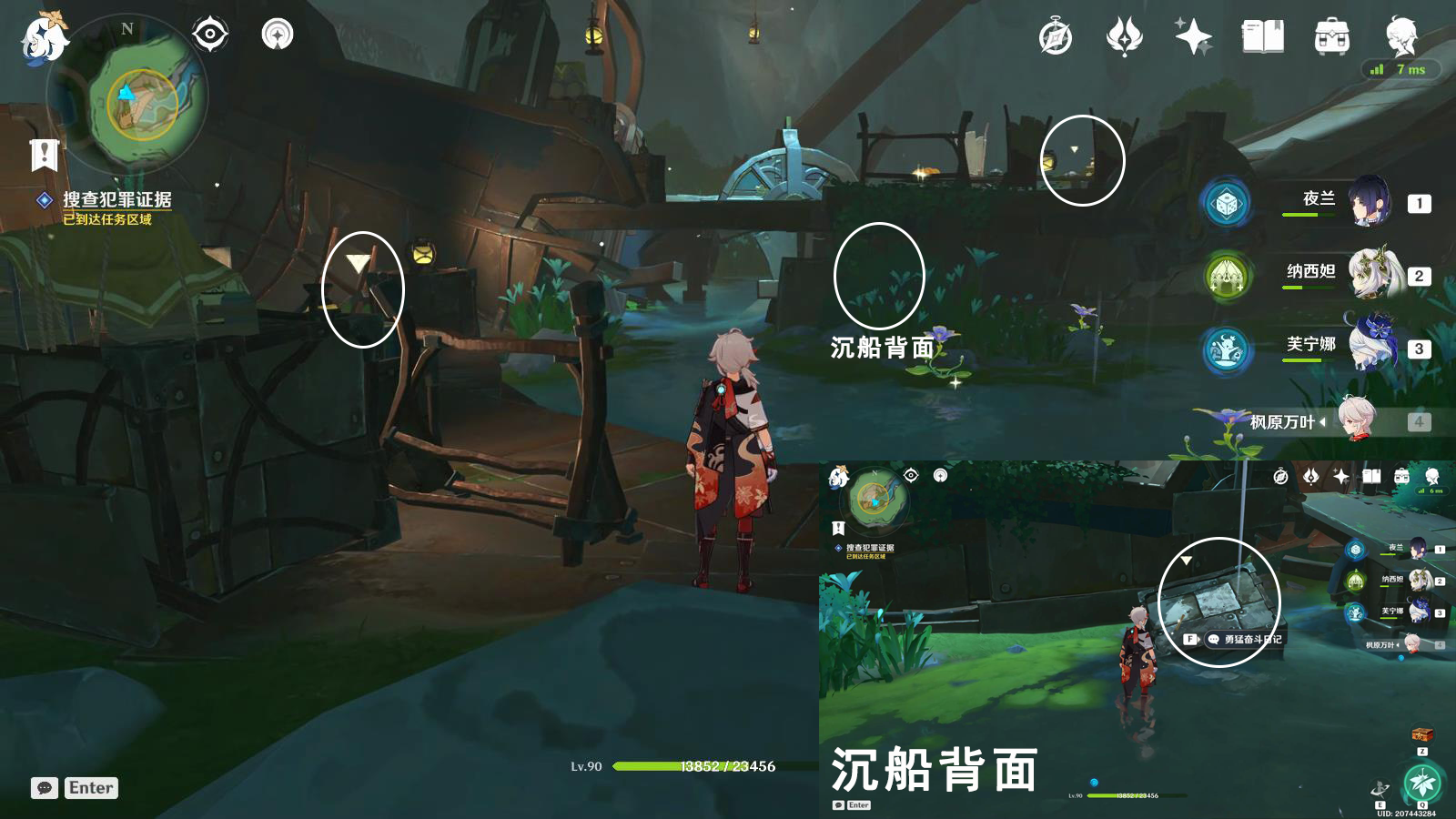 前往图中指引3处位置调查(木箱/餐桌/沉船背面)