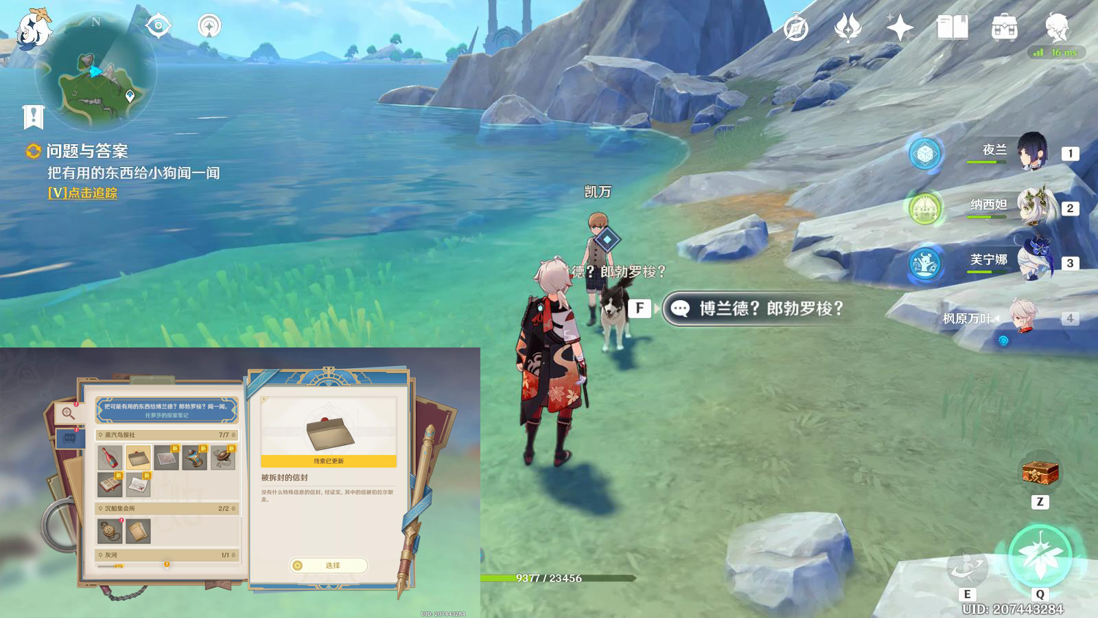 往地图的西方向游,返回码头甲板上,与托箩莎对话