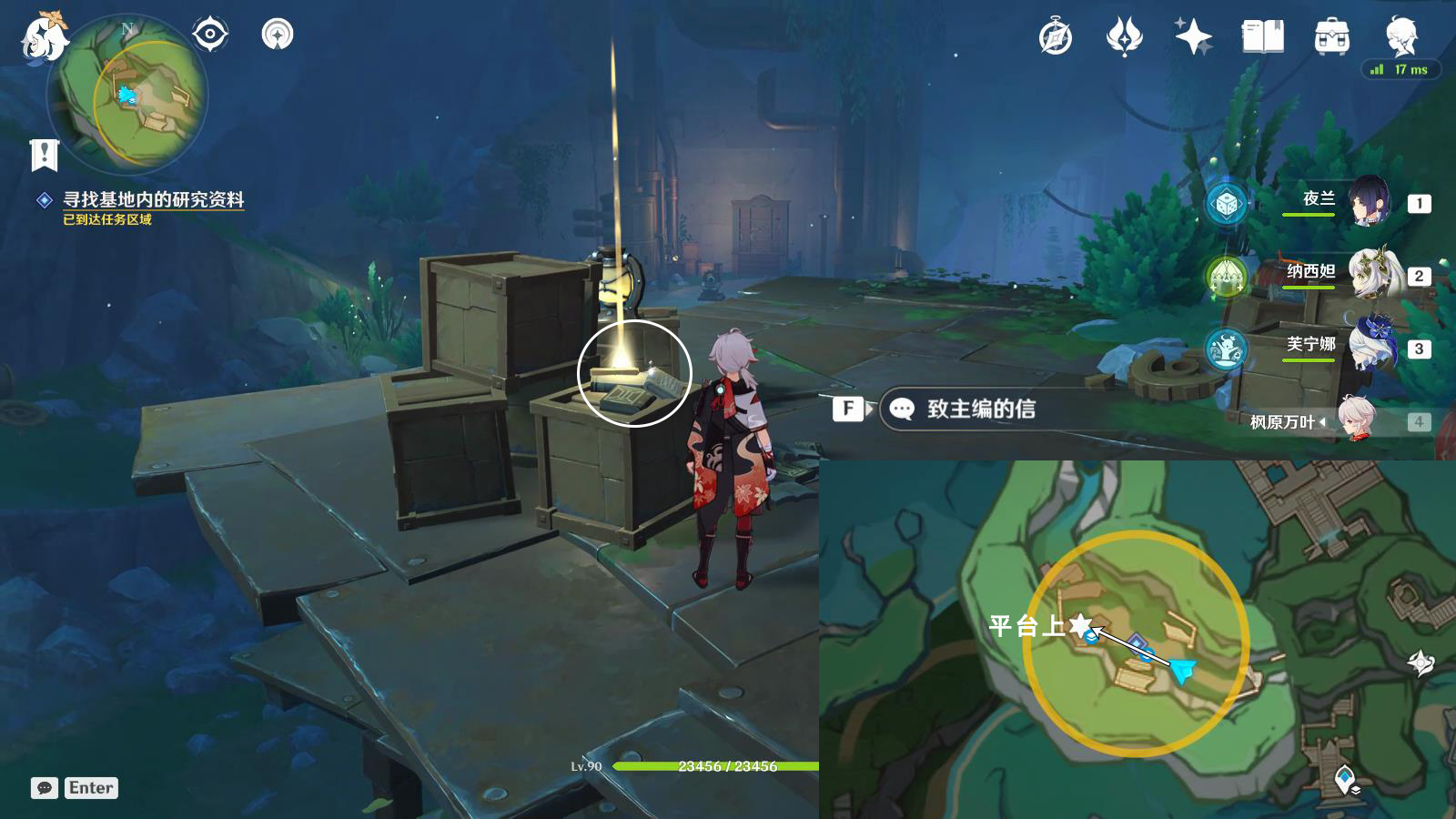 往地图的西北方向走,前往平台上,交互“致主编的信”