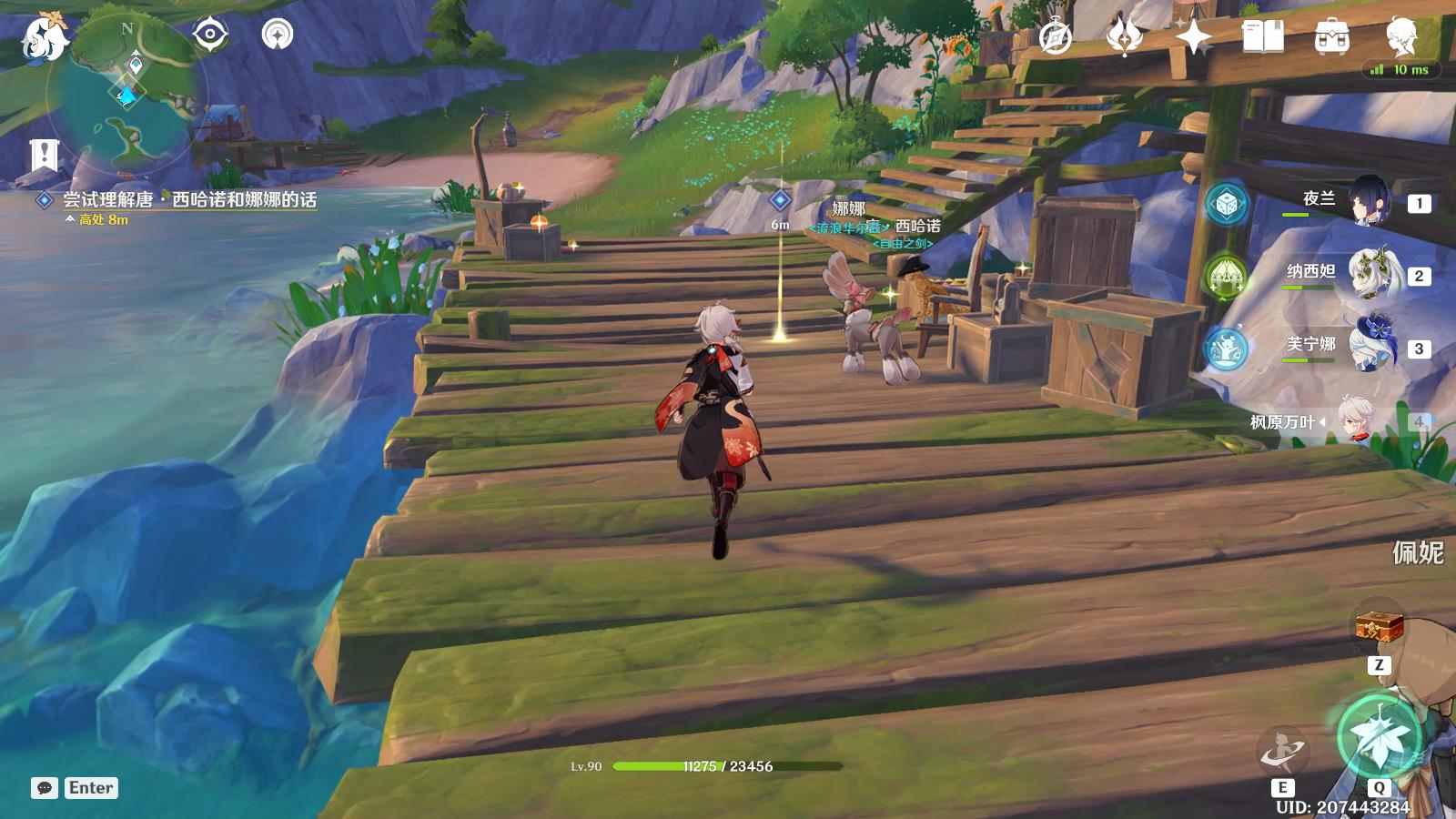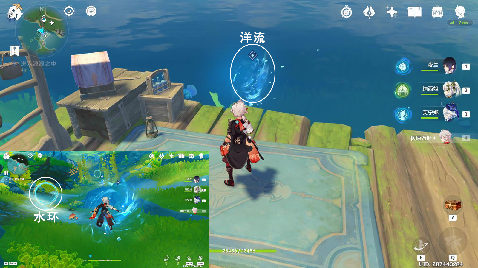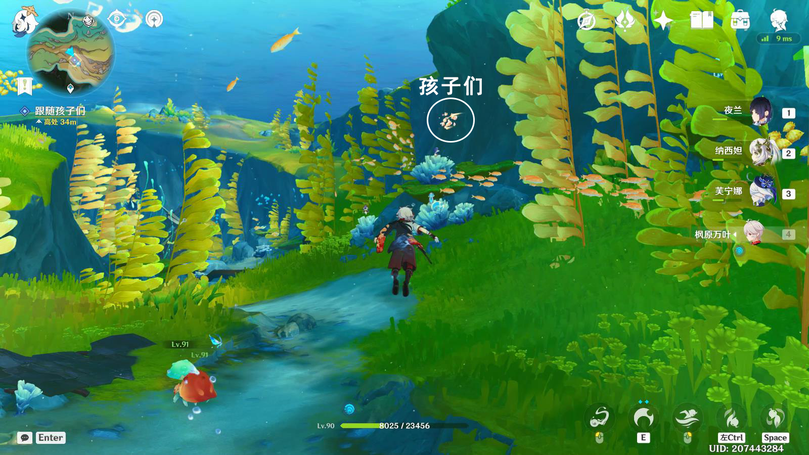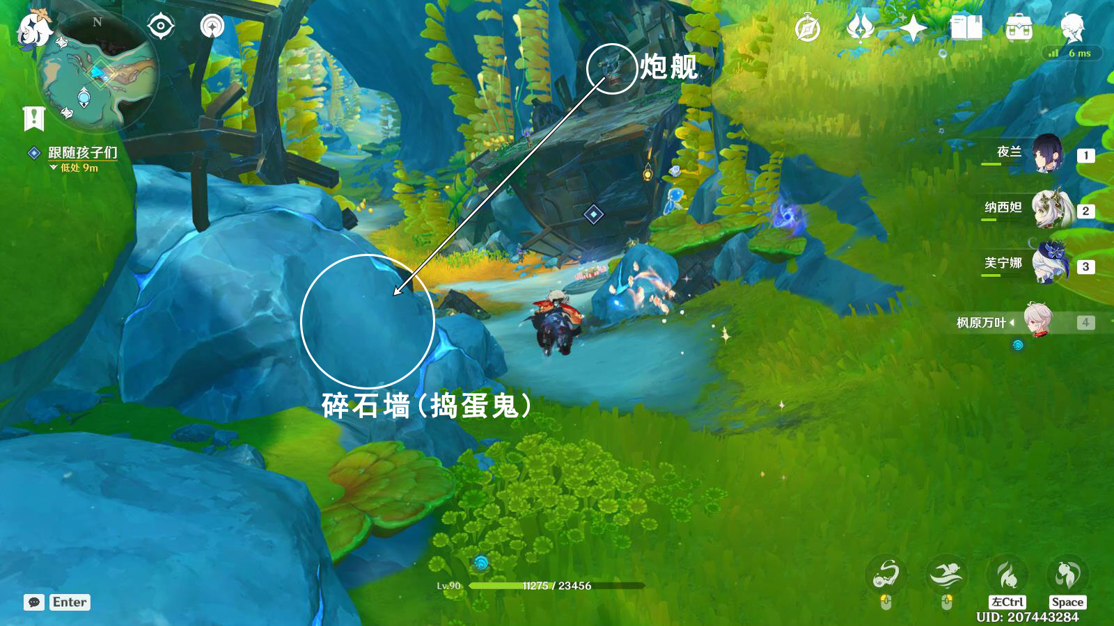 往地图的东南方向游,跟随孩子们,进入水环加速游