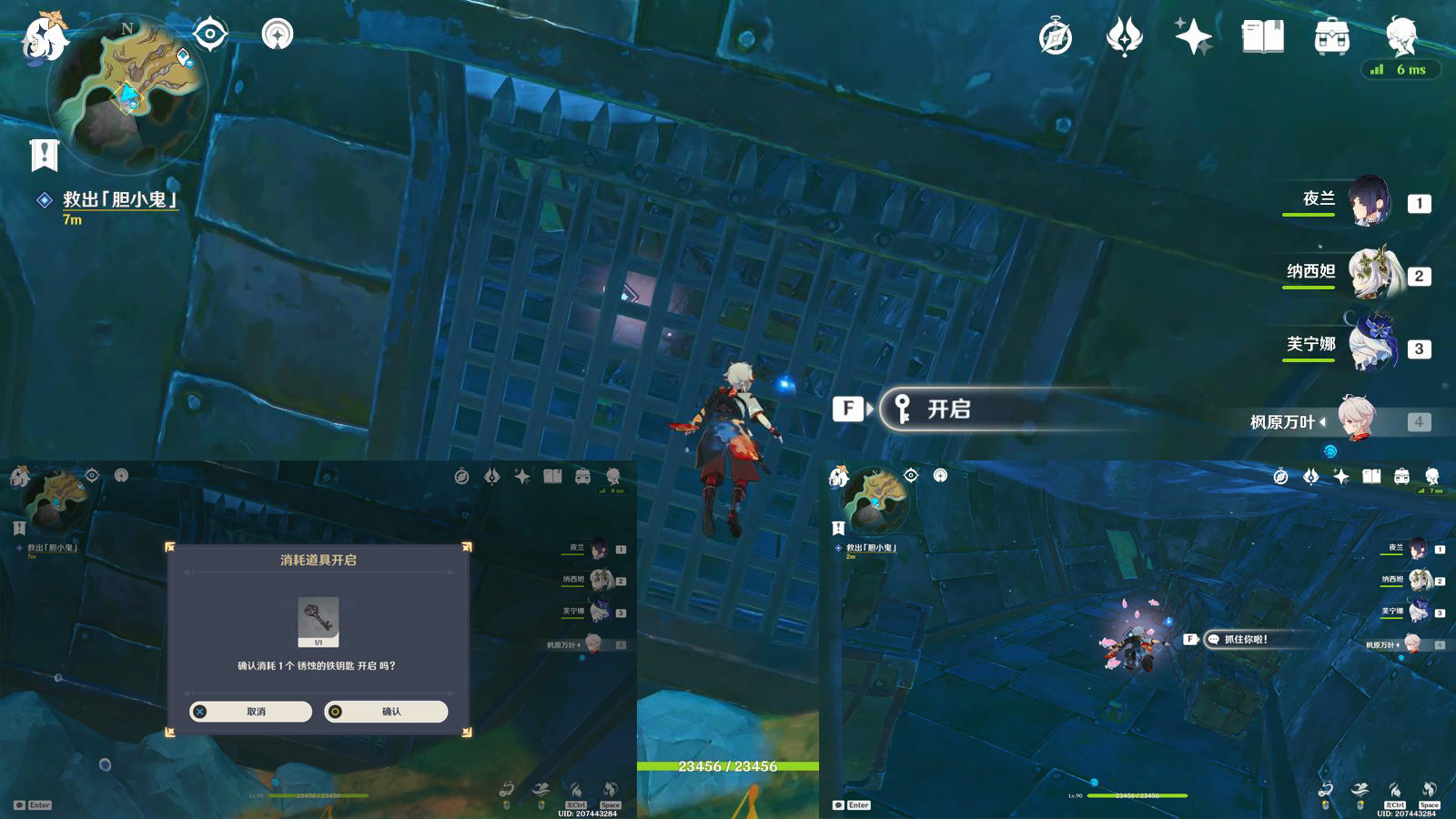 返回铁门,交付锈蚀的铁钥匙,开启后交互胆小鬼