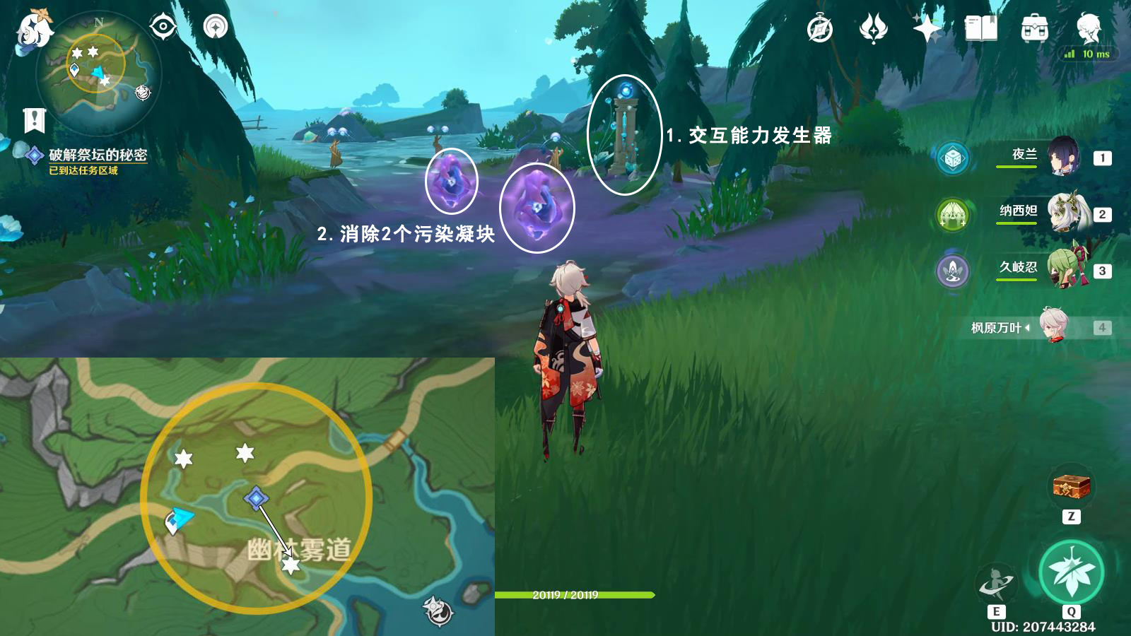 ▶清理附近的水史莱姆,交互神秘祭坛;