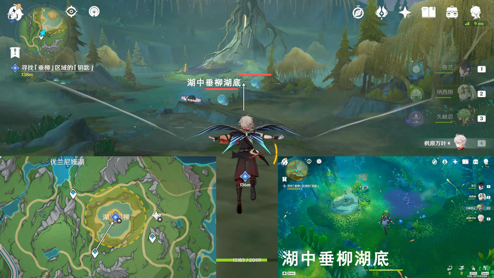 传送湖中垂柳西南方向锚点,前往湖中垂柳湖底