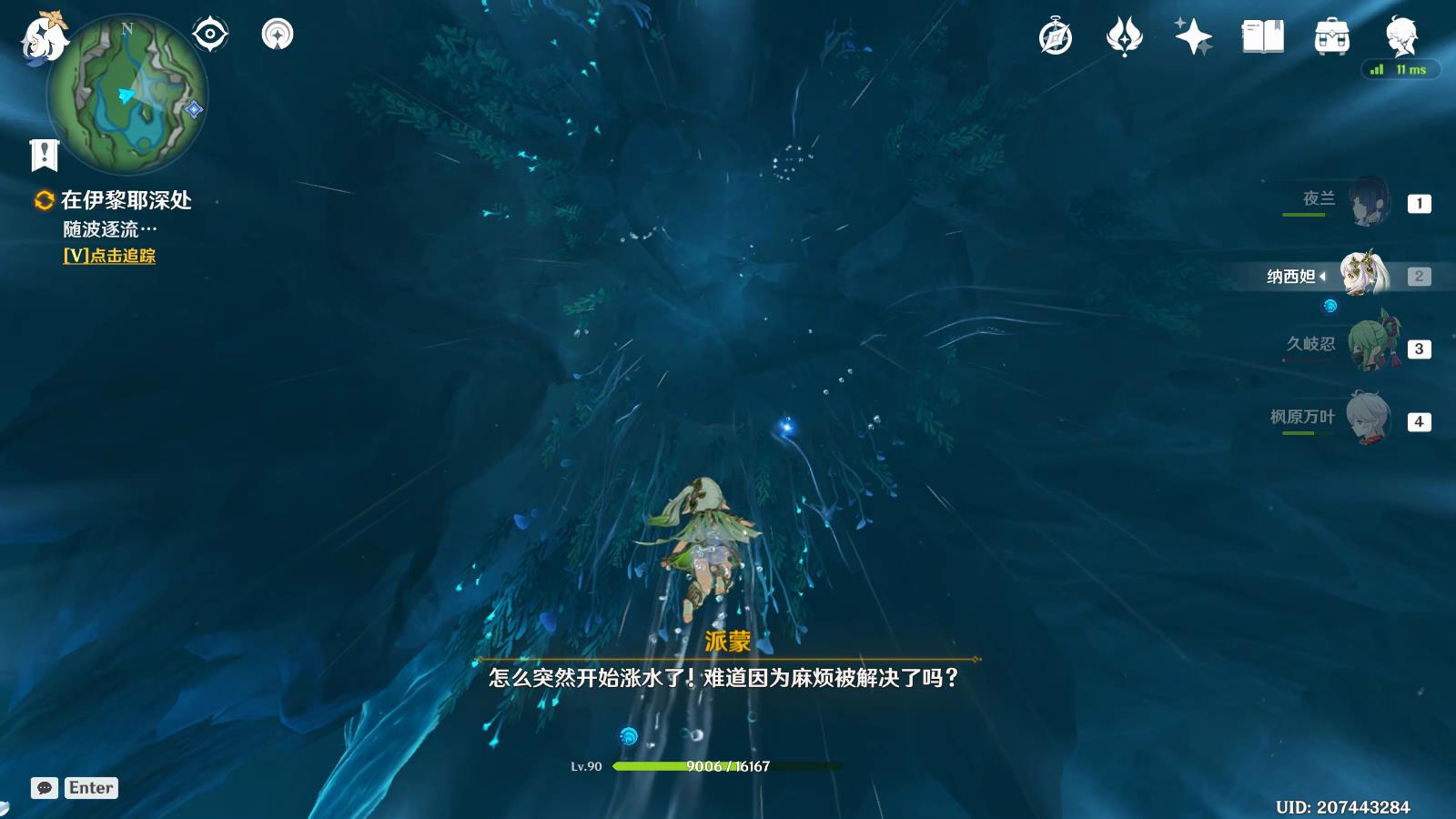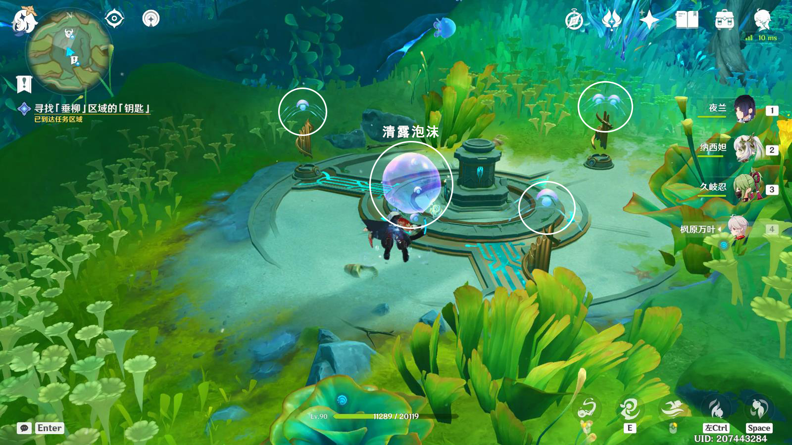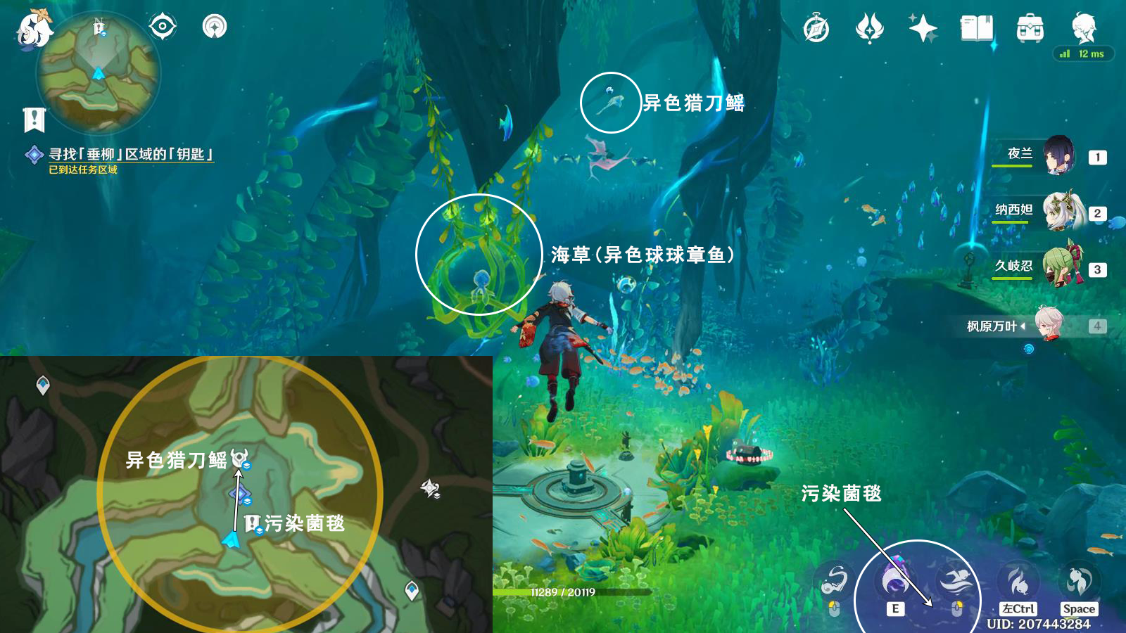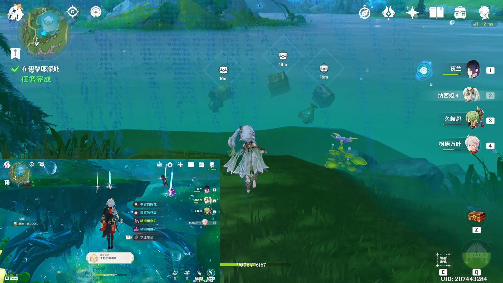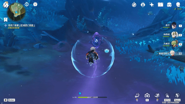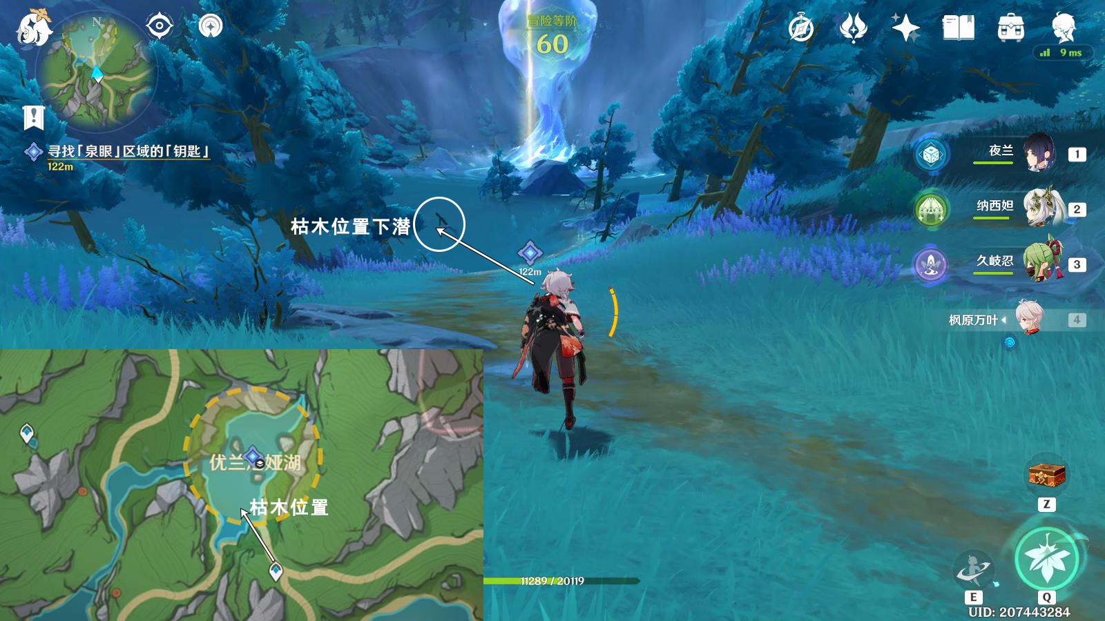 传送优兰尼娅湖东南方向锚点,前往湖中枯木位置下潜