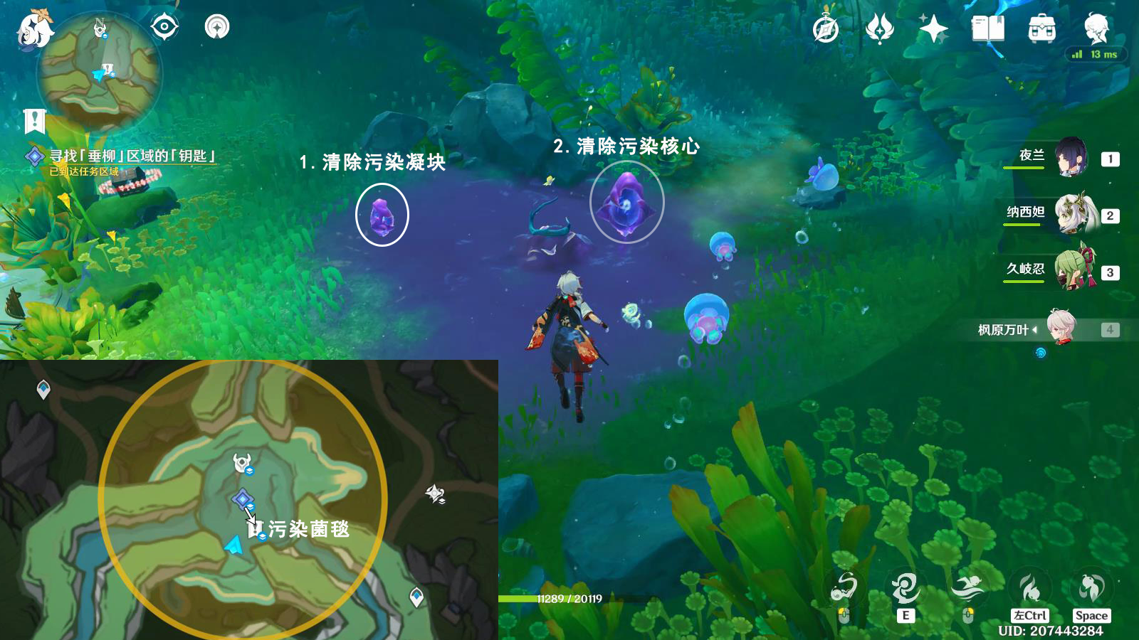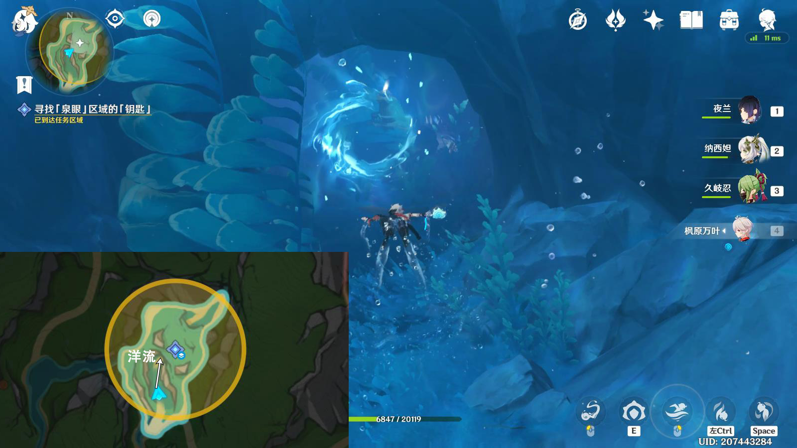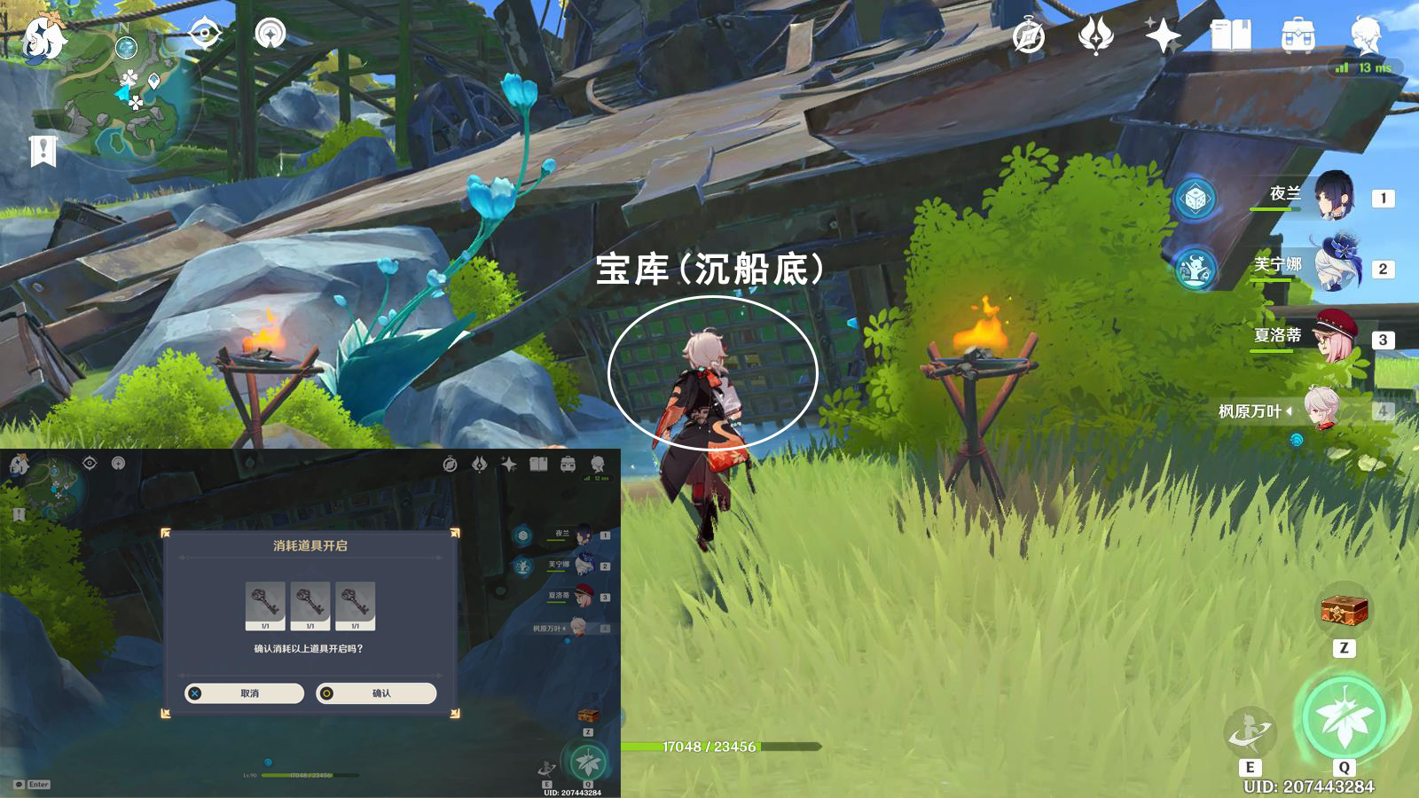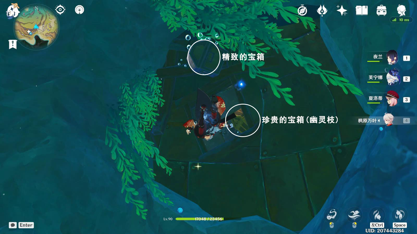 传送优兰尼娅湖东南方向锚点,前往湖中枯木位置下潜