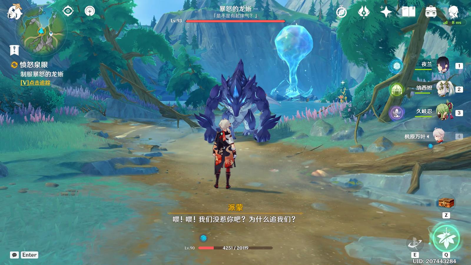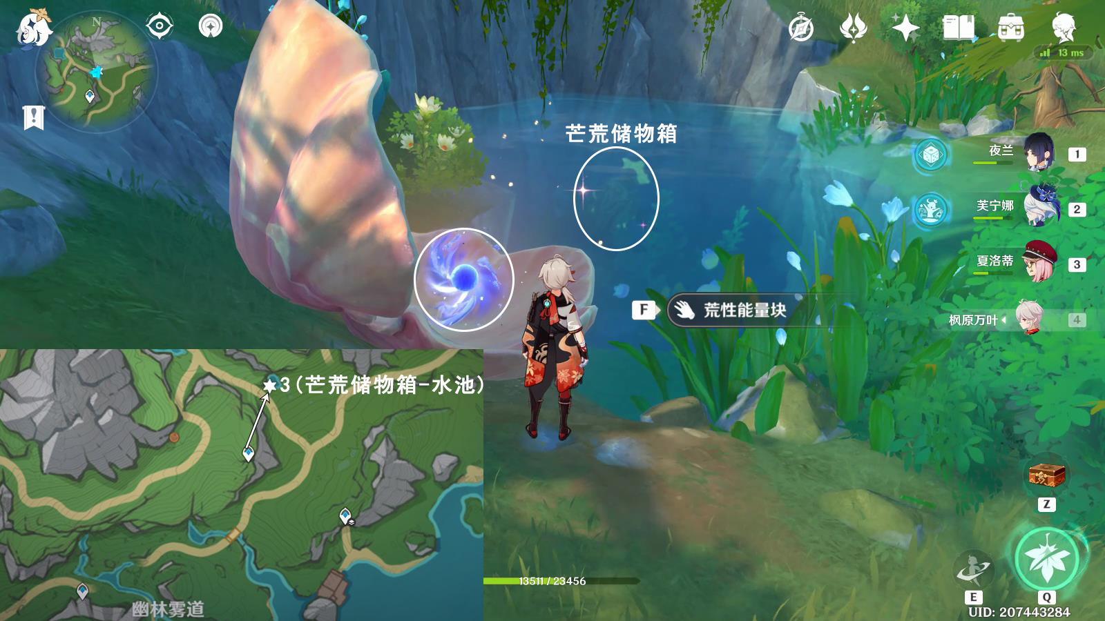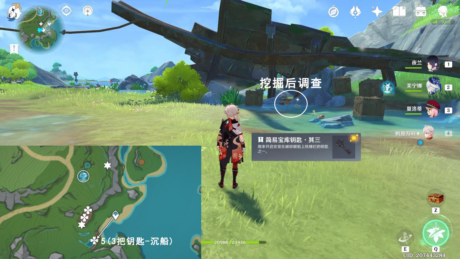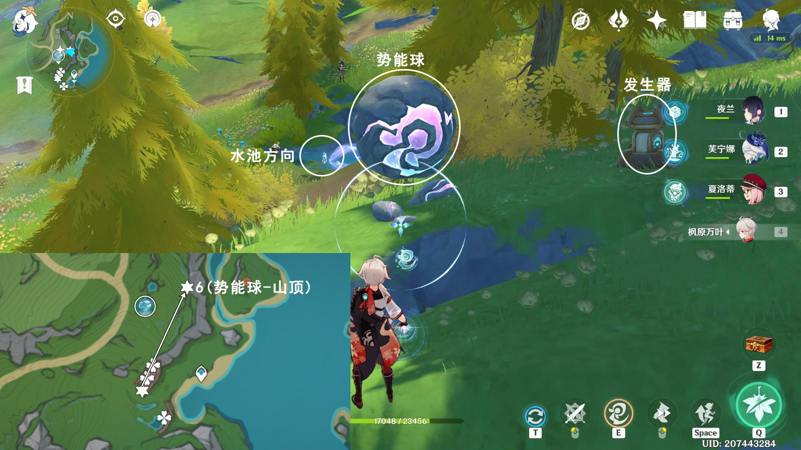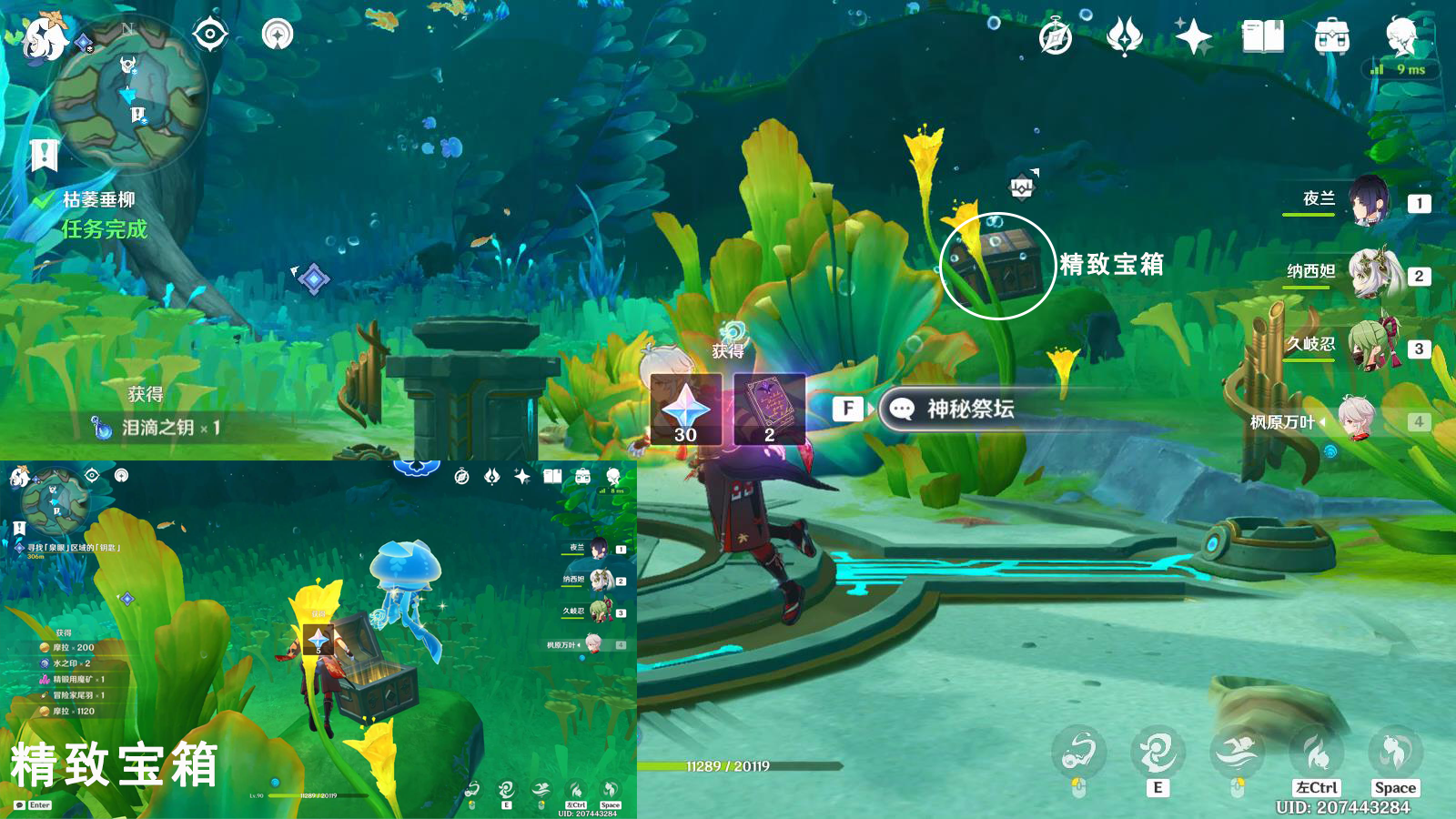 传送优兰尼娅湖东南方向锚点,前往湖中枯木位置下潜