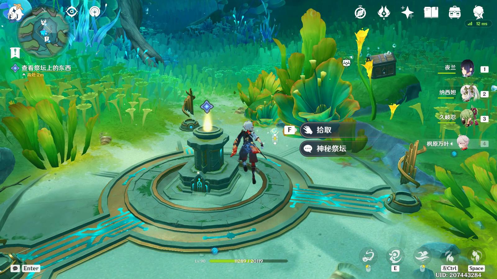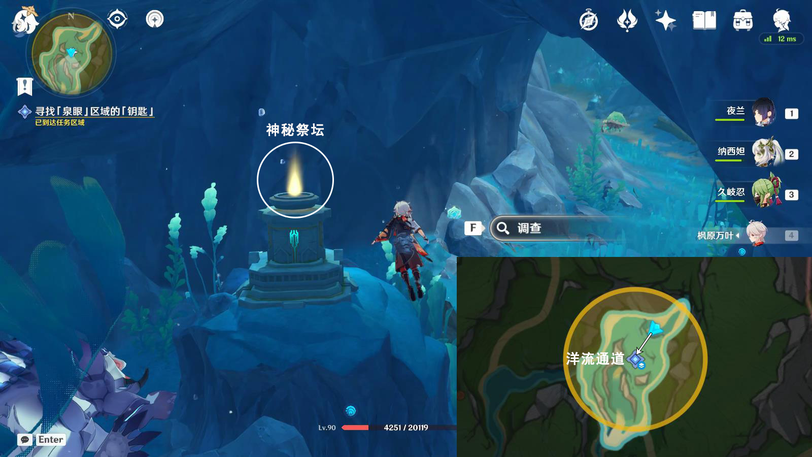 往地图的西南方向洋流通道游,调查神秘祭坛