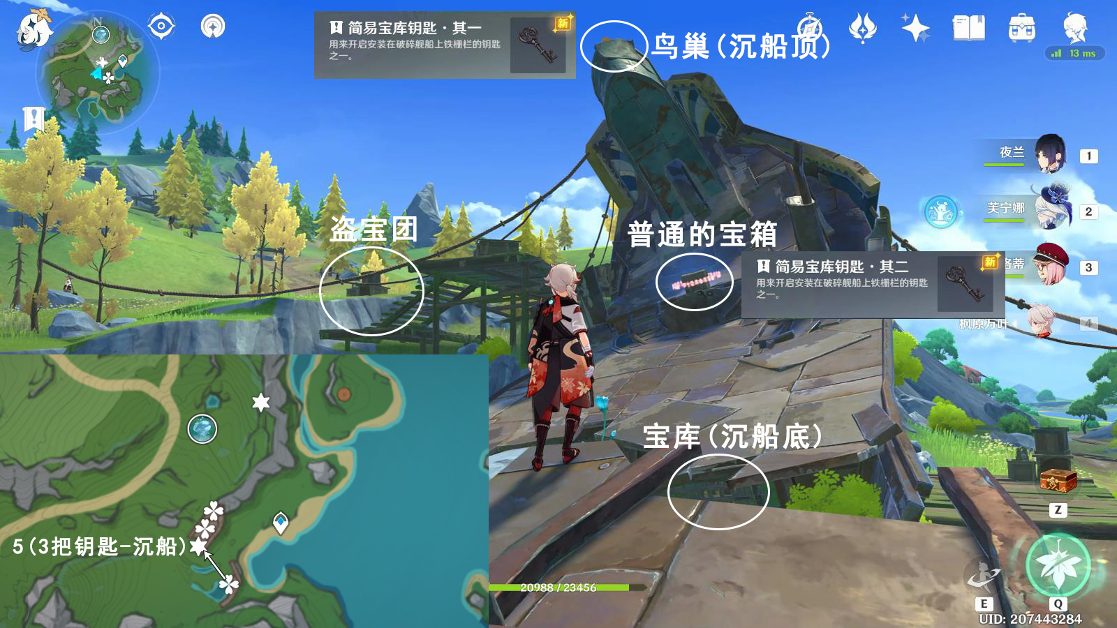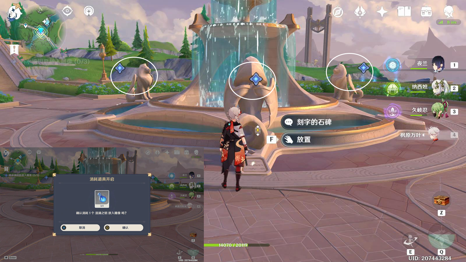 分别于图中3个雕像交互,放置“泪滴之钥”