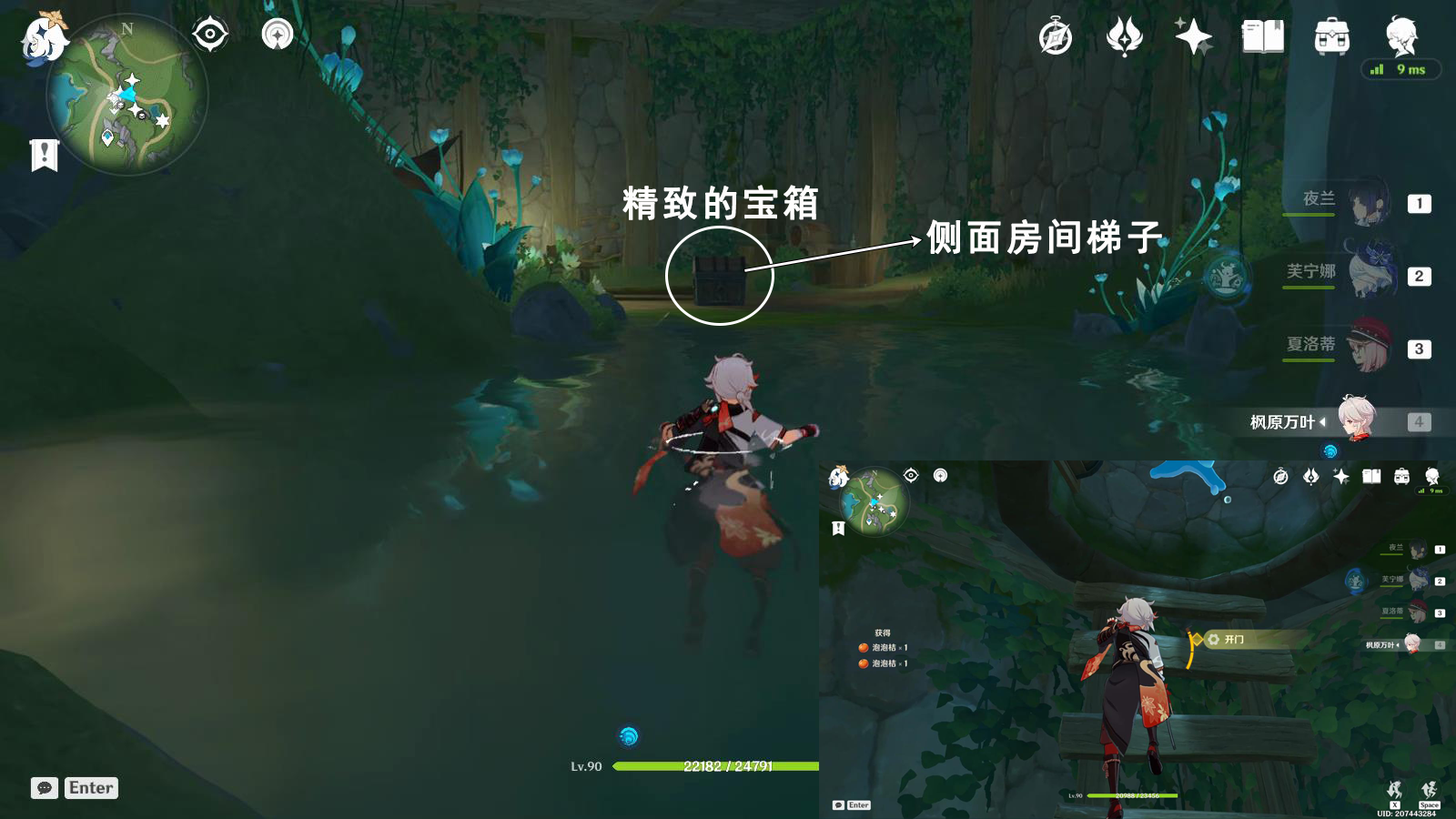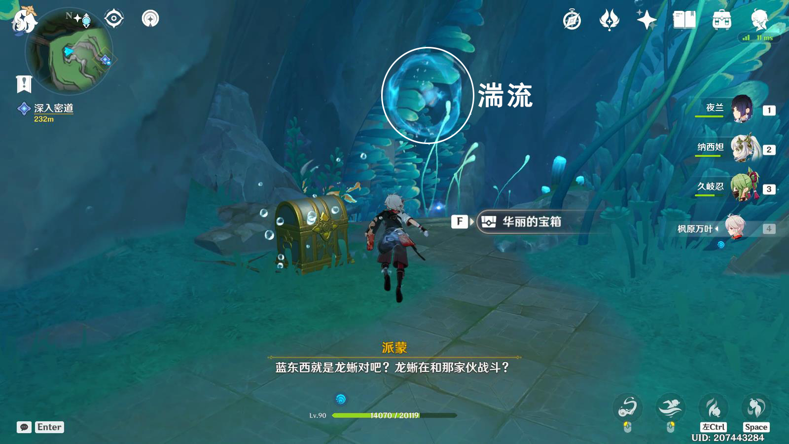 在密道水底,获得1个华丽宝箱,进入湍流传送
