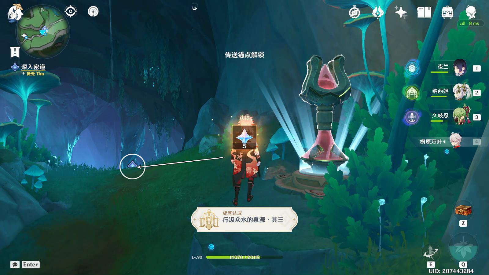 往水面上游,开启锚点,获得成就「行汲众水的泉源·其三」