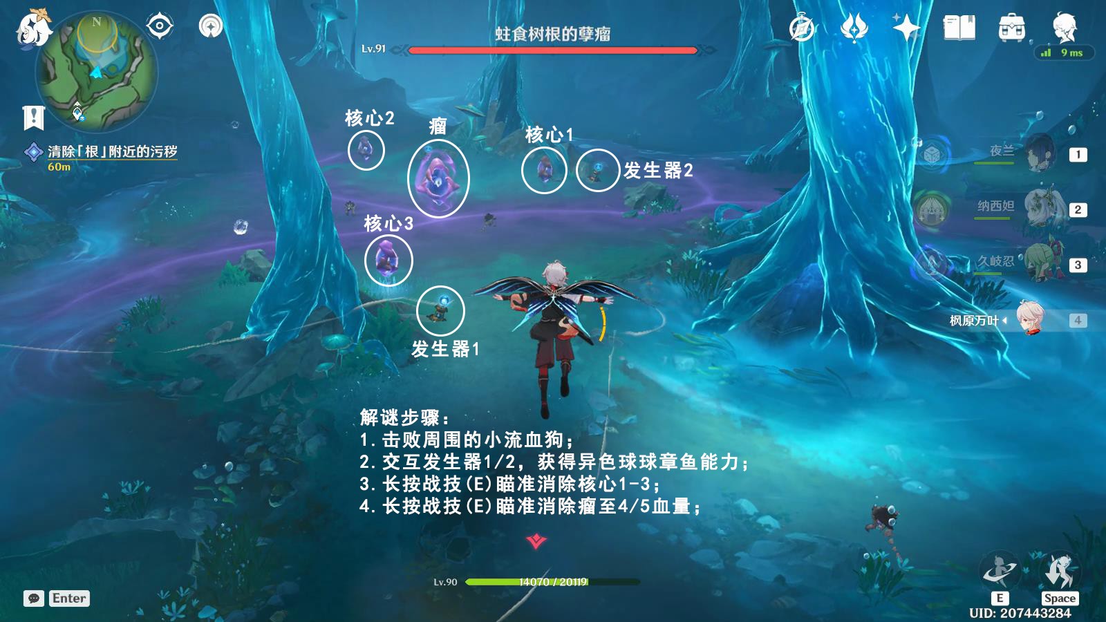 原地使用战技,消除逆时针旋转的3个小型污秽,完全消除瘤