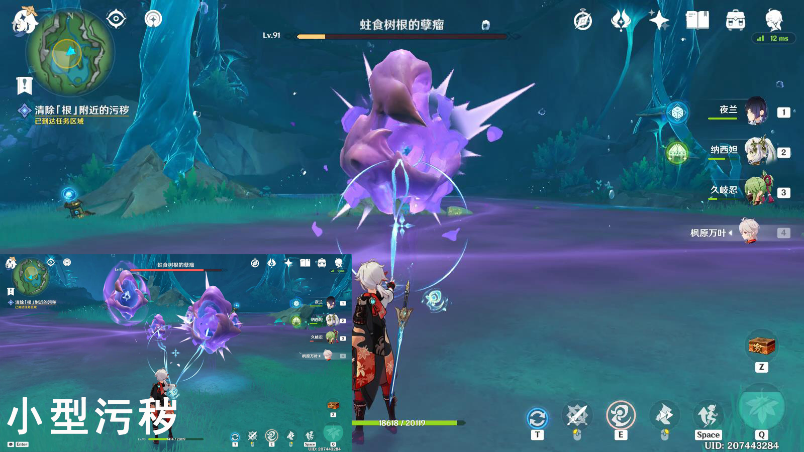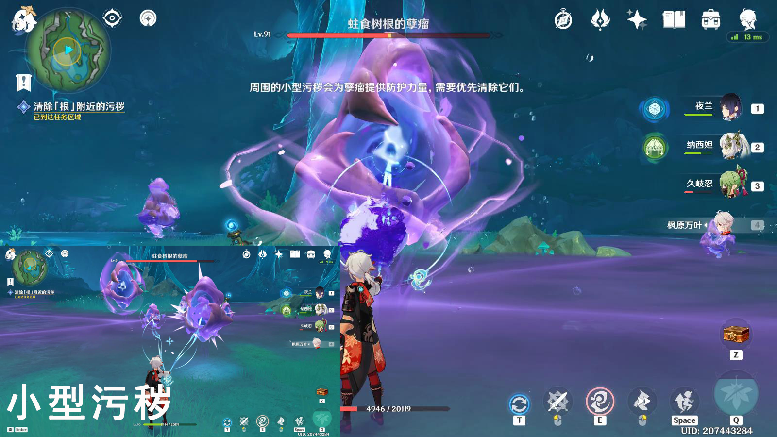 原地使用战技,消除逆时针旋转的3个小型污秽,消除瘤至1/2血量