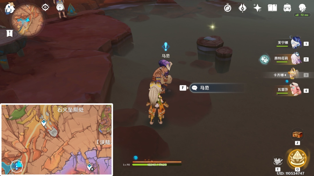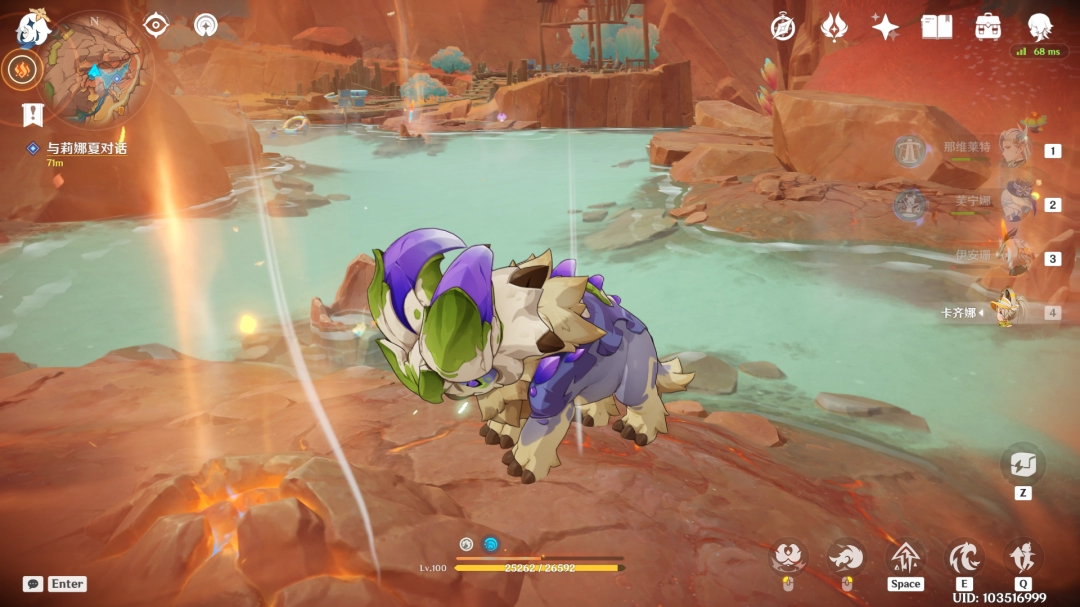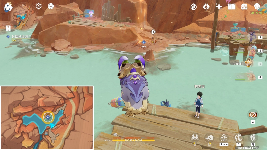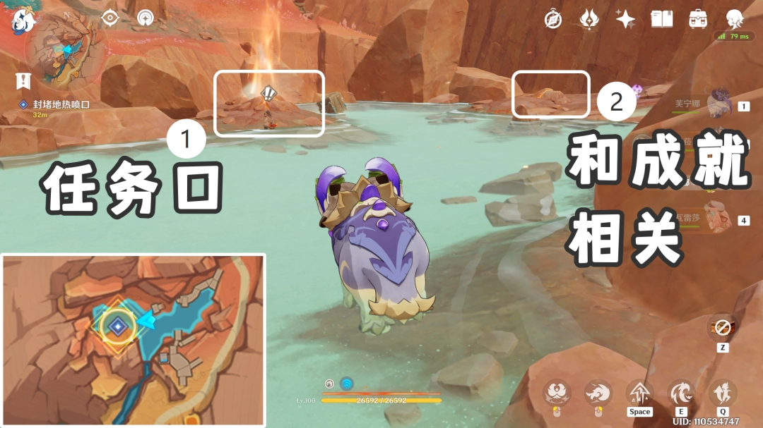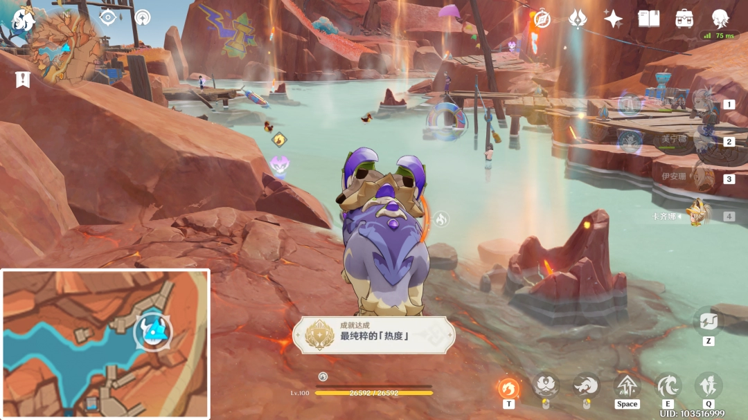 来到「沃陆之邦」火山西侧温泉,在水边就能看见头顶感叹号的「马范」了。