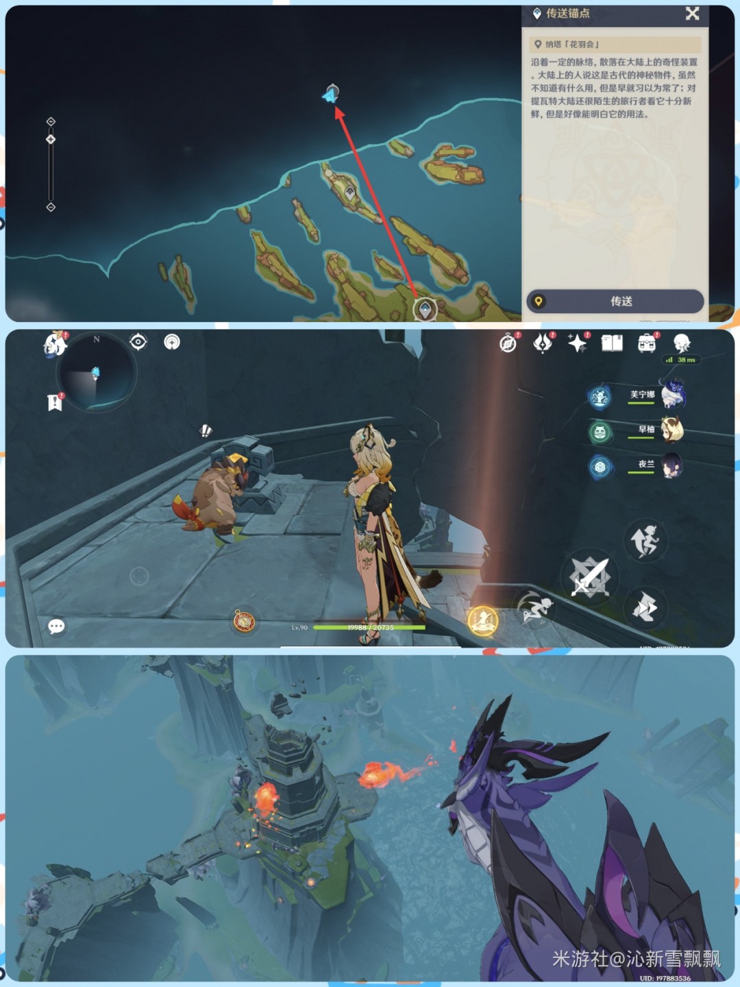 首先,我们来到花语汇最北侧的传送点,朝着尚未点亮的西北方区域七天神像前进。