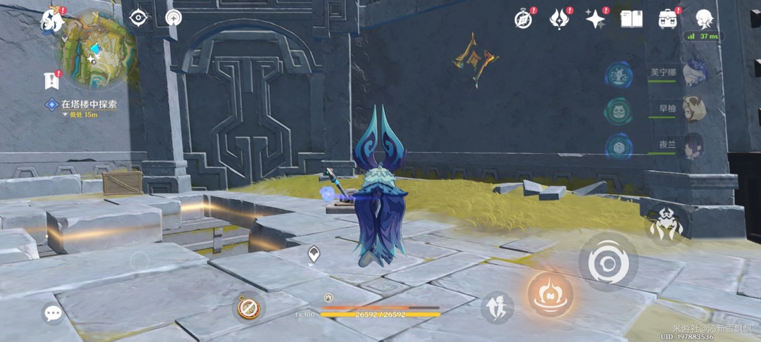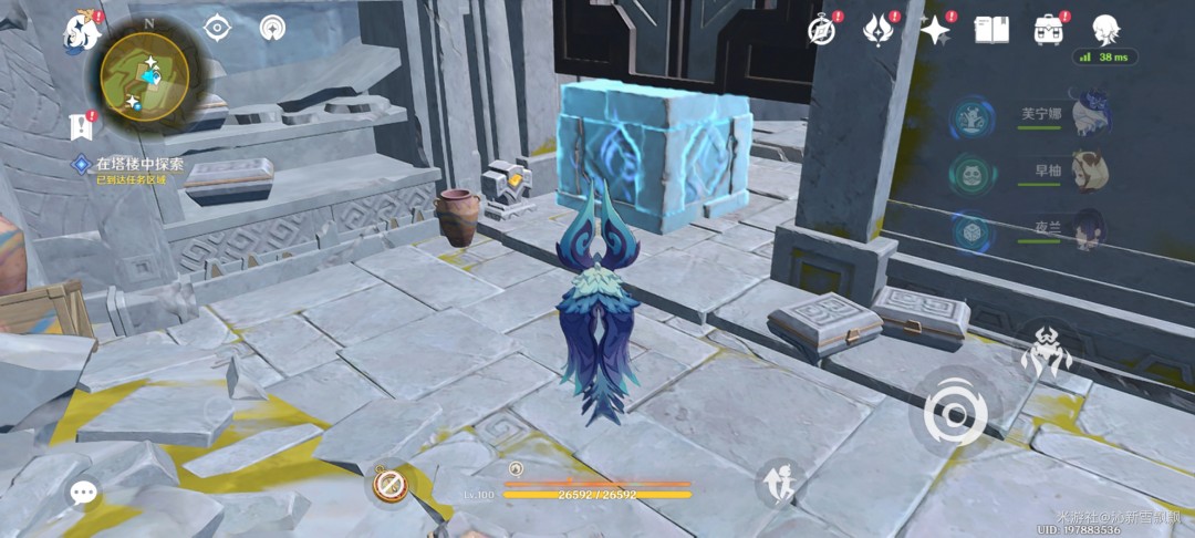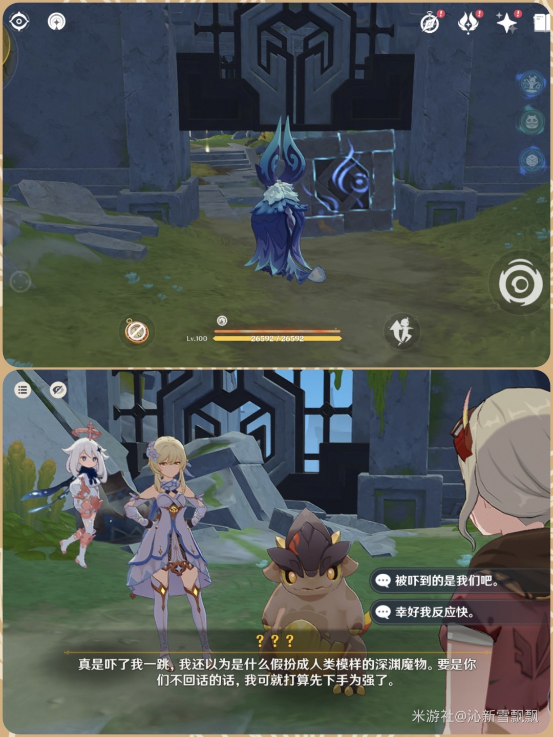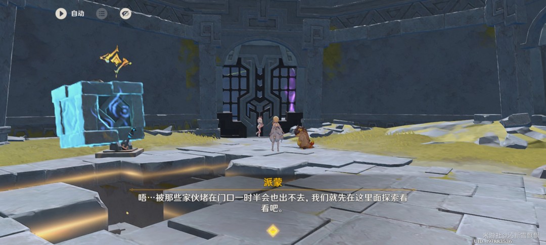 1.来到七天神像处,发现周围被锁住,所以我们通过上方天窗进入内部,触发剧情