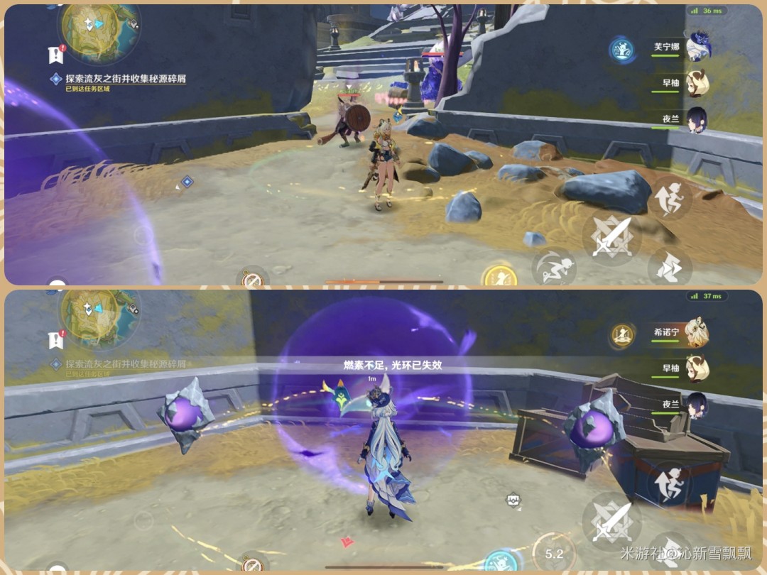 ①火鹦之塔门口正前方,击败敌人,利用光环驱散深渊秽露(燃素不足,光环将失效)