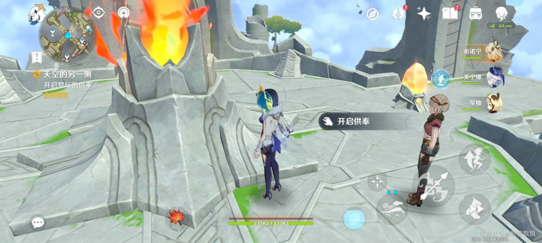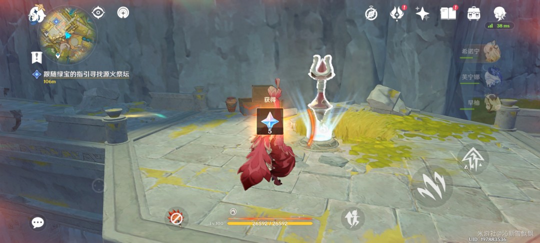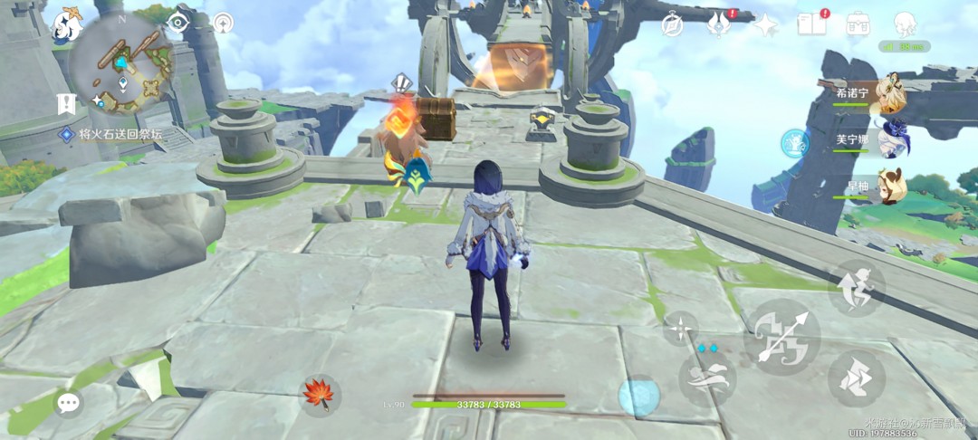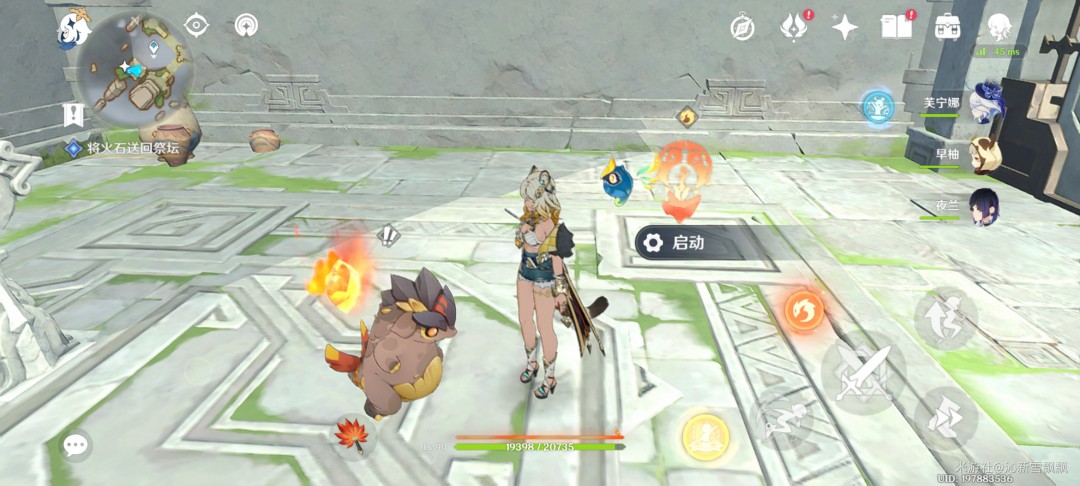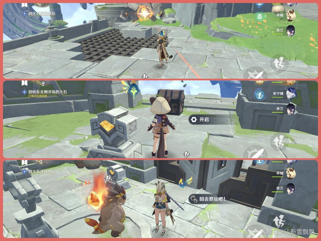 从右侧来到上方击败敌人,启动机关,带着小龙和火鳞石返回祭坛中央