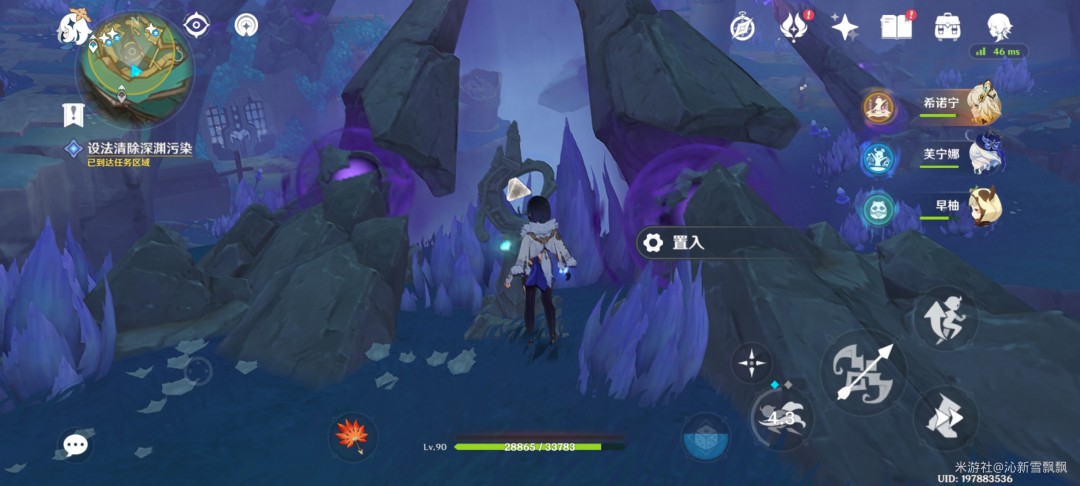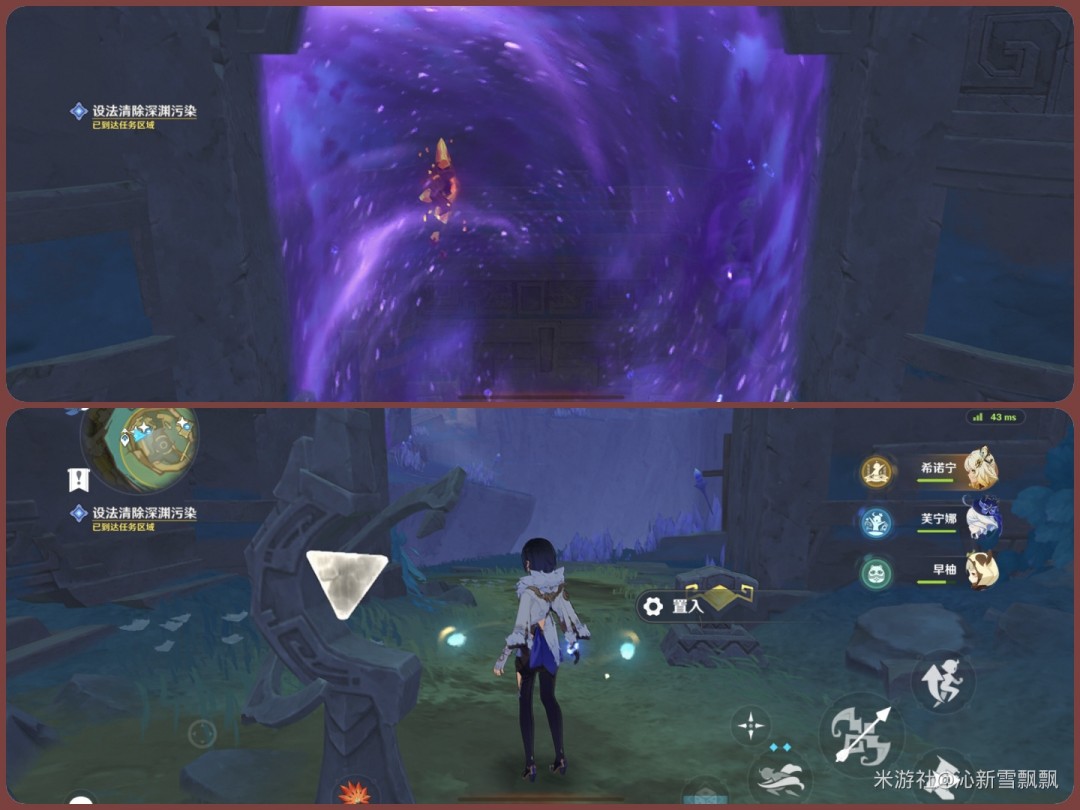取下碎屑,置入深渊涡旋前石柱内,打开通路,击败拦路敌人