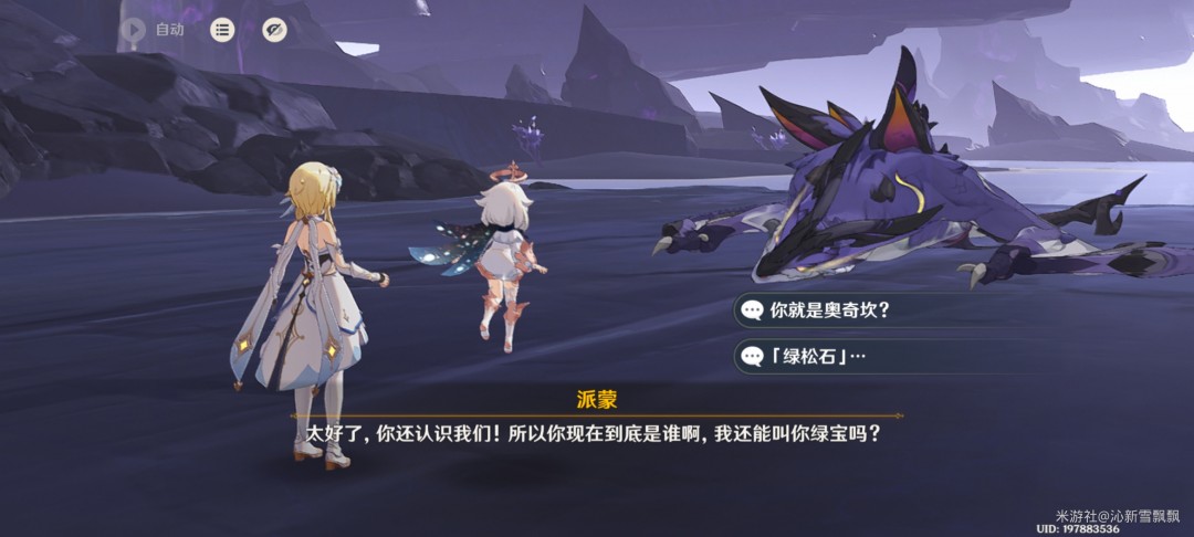 任务前引:旅行者和派蒙来到花羽会西北方的神秘岛屿,却遭遇不知名的恶龙袭击…