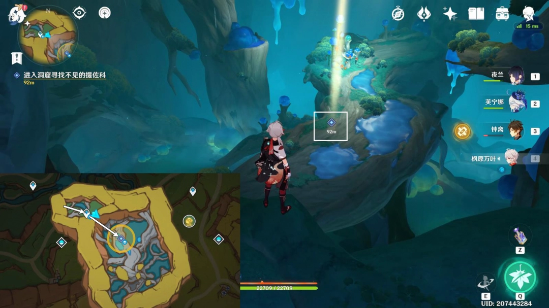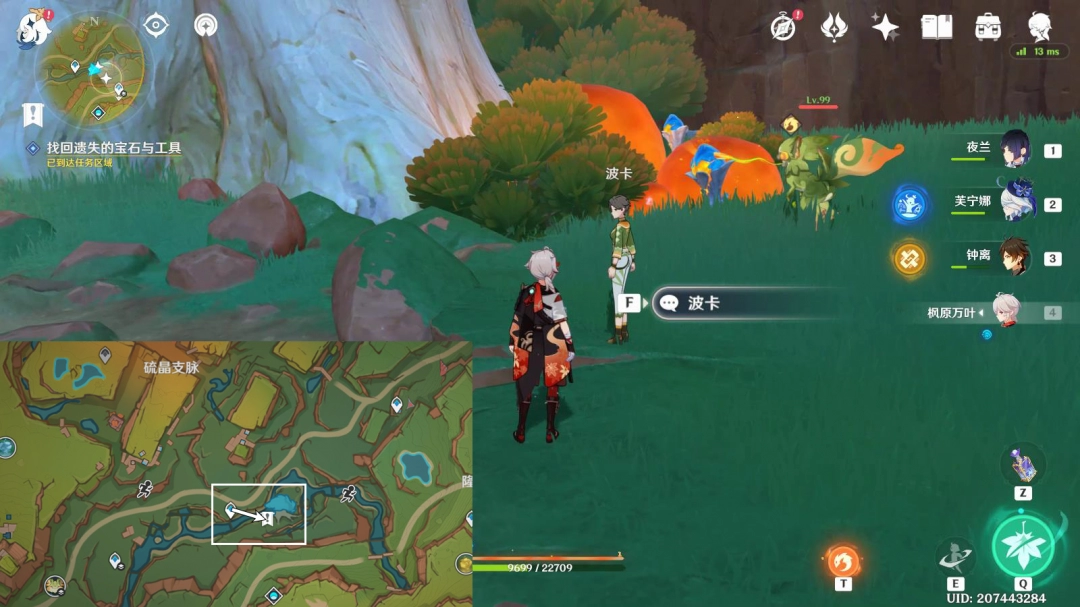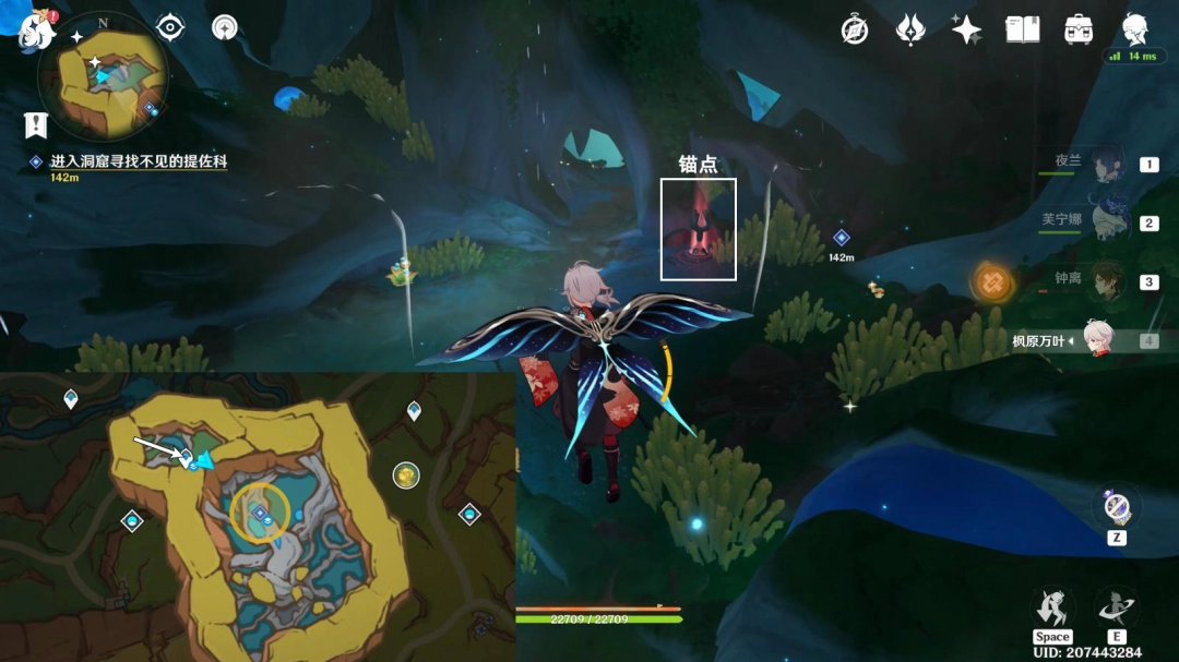 传送硫晶支脉东南方向锚点,往地图的东南方向走