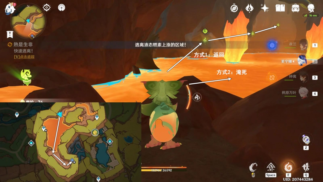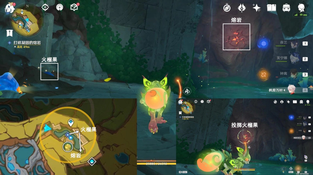 ▶瞄准投掷熔岩1和2,打开下层通道;
