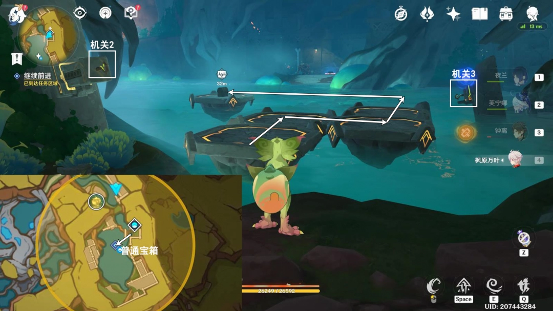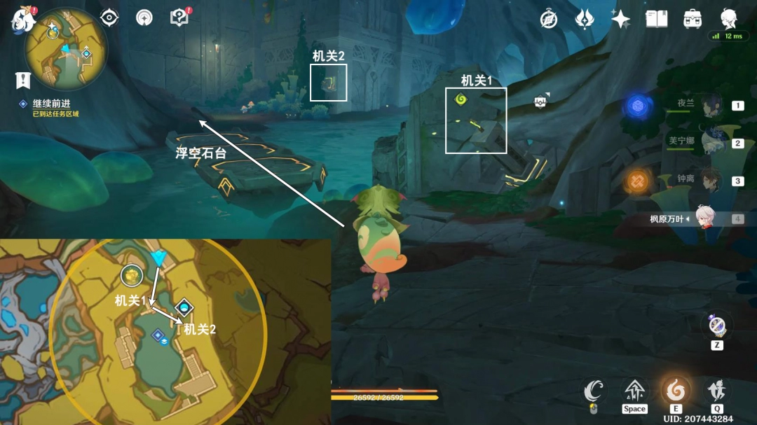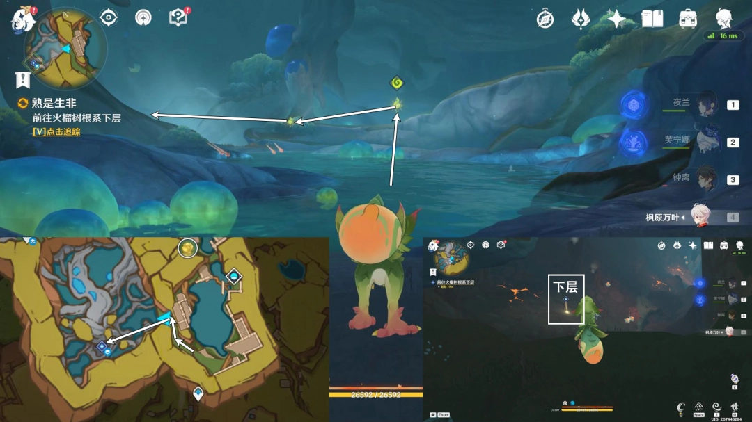 按图中指引路线走,利用卷叶符印,飞入下层洞口
