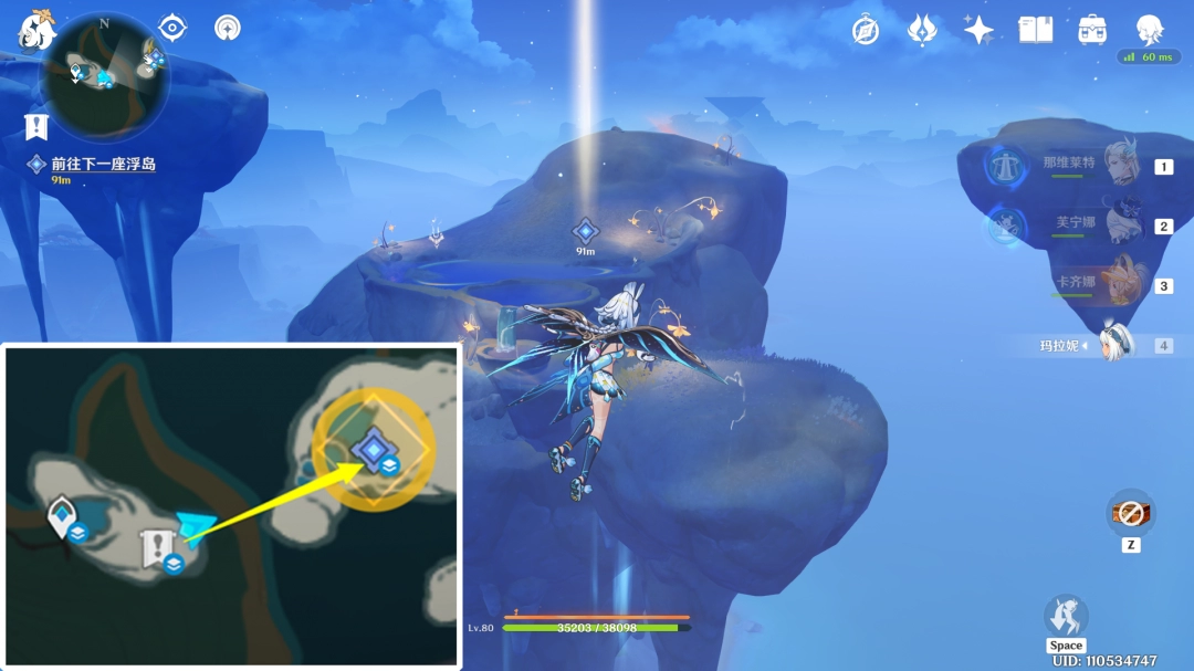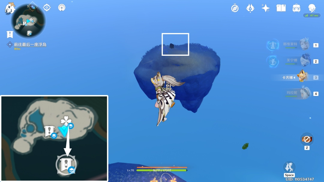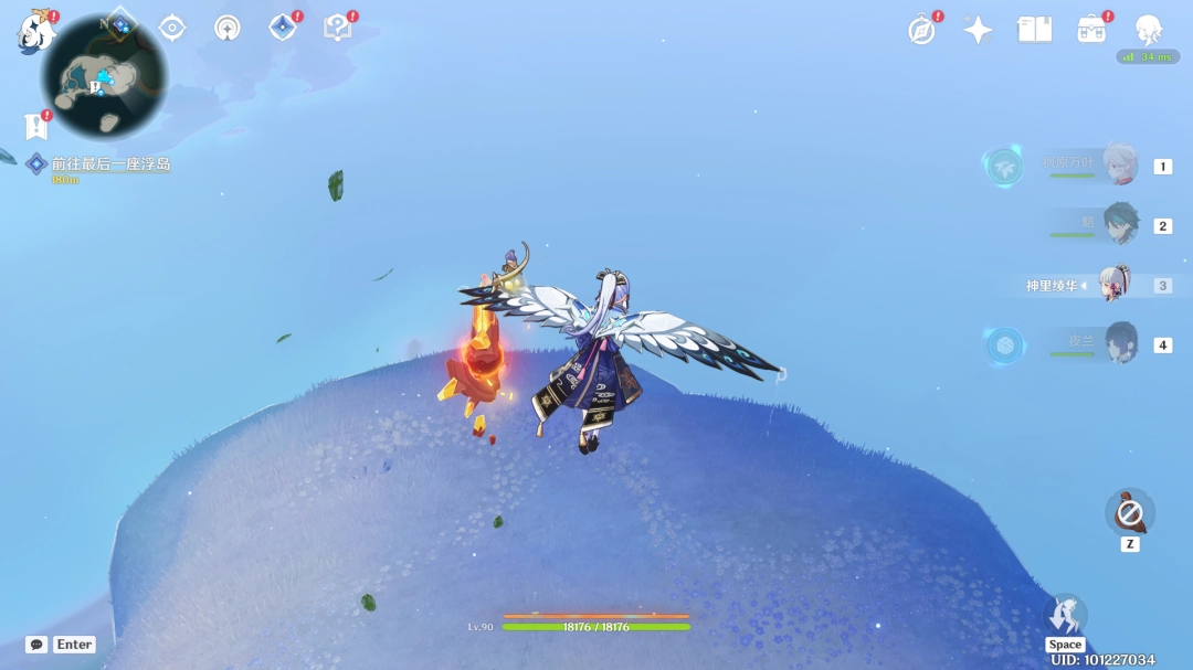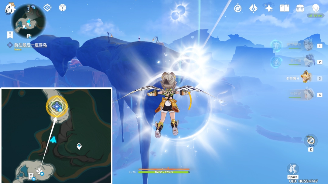 然后我们回到风场位置,利用风圈前往最后一座空岛。