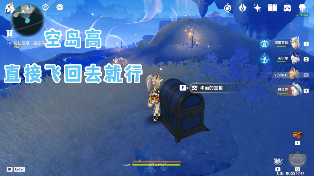 打开后直接飞回来就行,小空岛比大空岛更高。