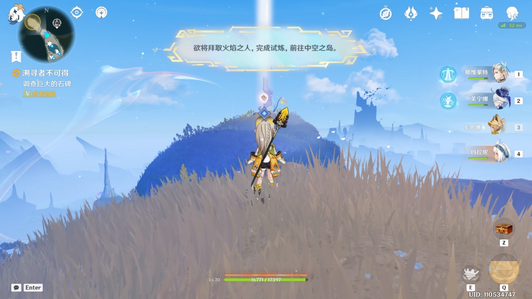 到达空岛北方调查铭印后,任务会指示前往西北方向石碑。