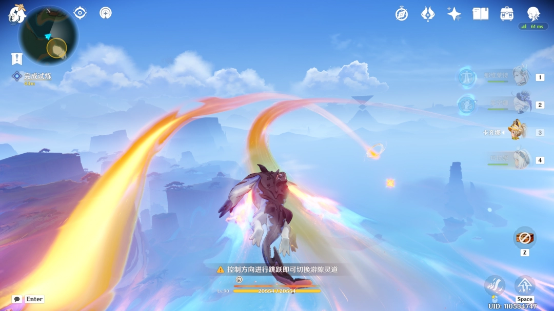 之后我们附魂龙做挑战吧,跟着提示走就行,中间需要按住方向键然后跳跃,来更换灵道。