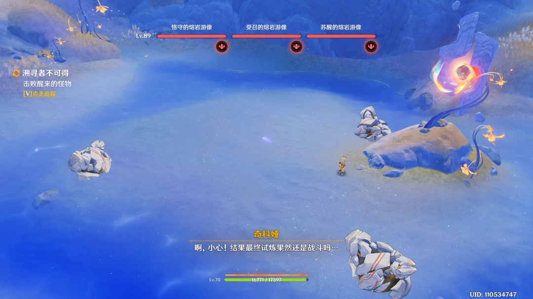 在石碑处点“开启试炼”会出现一个灵道的挑战。鳍游龙在石碑偏南的位置。