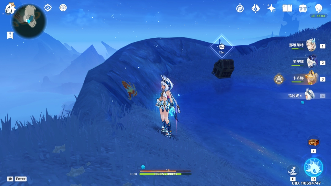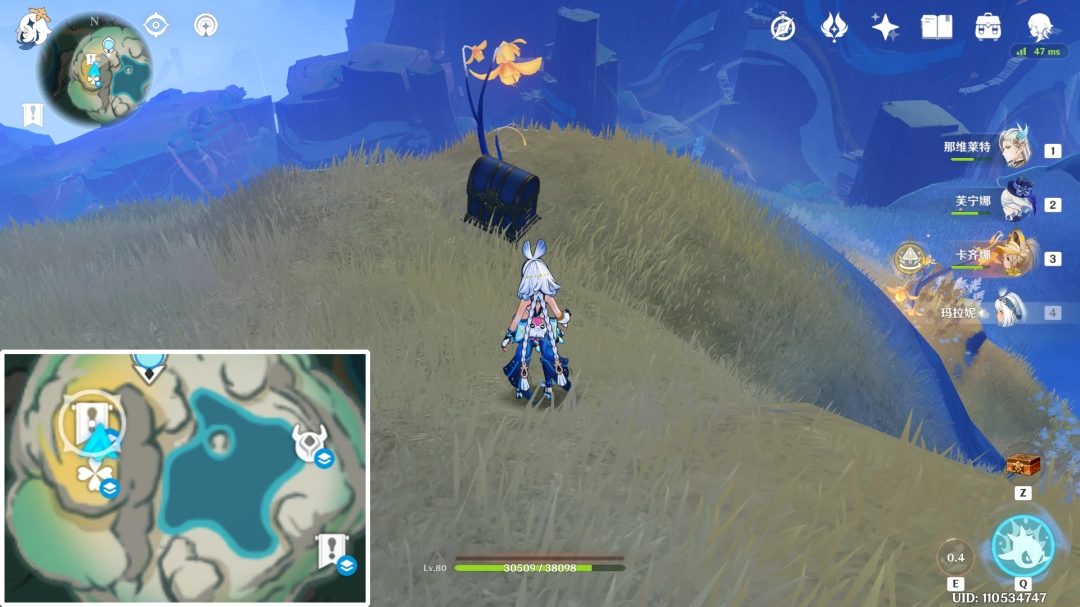 然后在山丘南侧能看见一个普通宝箱,拿的时候小心点,别掉下去了。