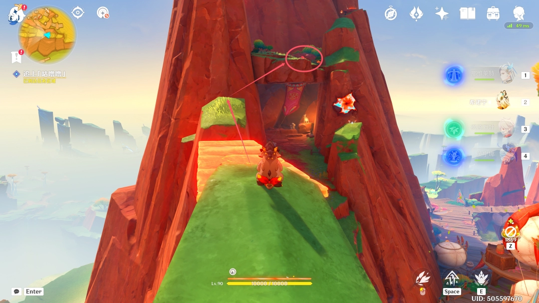 触发剧情后,我们接着操作小龙,进入右侧的「熔土裂隙」,去到右侧山顶,再次触发剧情