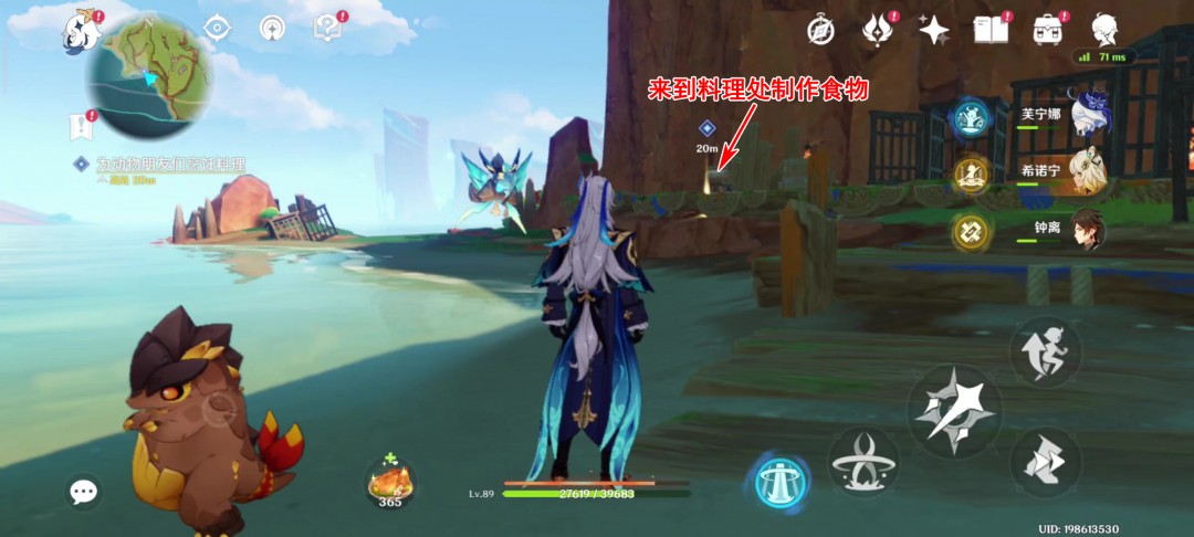 成功接取任务后,来到营地下图位置的料理处,交互进行料理制作。