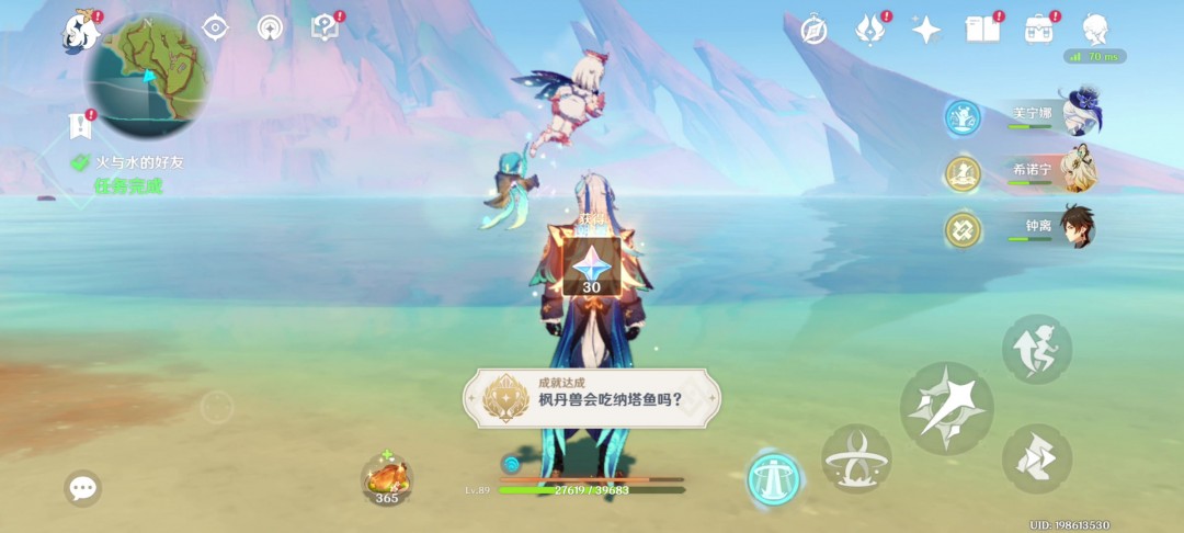 成功投喂膨膨兽并完成后续对话后,即可完成任务,并获得成就「枫丹兽会吃纳塔鱼吗?」。