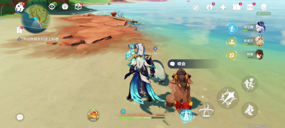 完成料理的制作后,来到膨膨兽附近,点击“喂食”投喂龙伙伴和膨膨兽。
