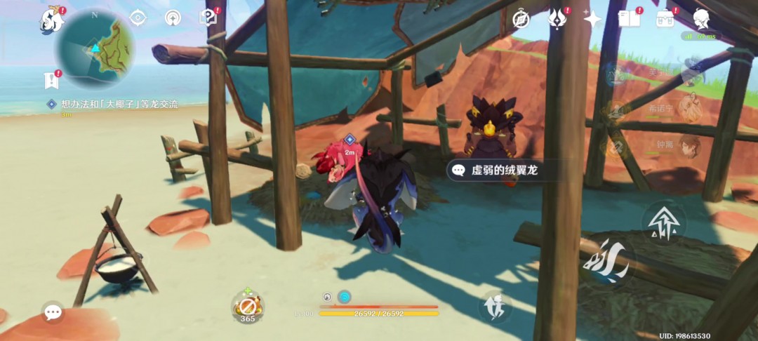 魂附西侧海中的鳍游龙后,回到营地内鱼绒翼龙交流即可。