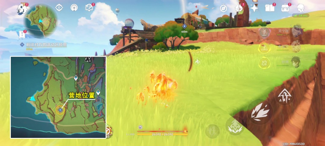 完成与「大椰子」等龙的对话后,跟随任务指引前往营地东南方向山顶的营地。来到营地附近触发对话后停止移动,等待对话结束进入下一步任务,是否停止移动对后续无影响。