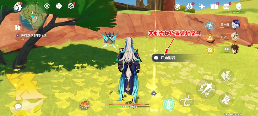 完成营地附近的剧情后,来到光标位置附近,点击“开始前行”指挥龙伙伴完成挑战。