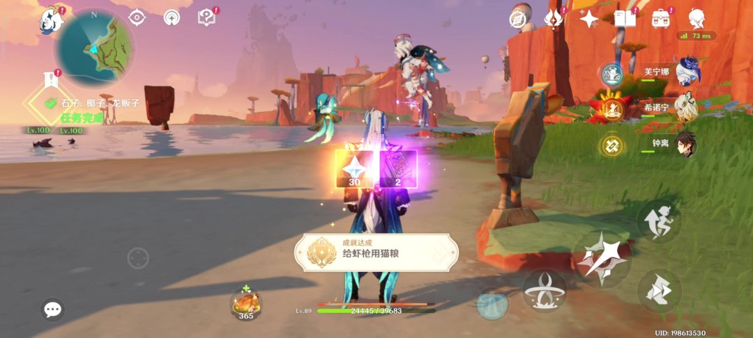 完成后续剧情对话后,即可完成任务,并获得成就「给虾枪用猫粮」以及尘歌壶装饰「小家伙大英雄!」