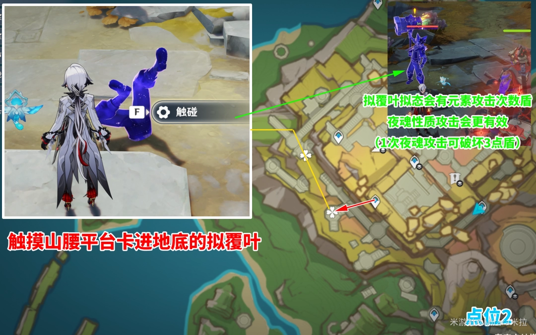 (拟态状态下的拟覆叶拥有元素次数盾,此处需要元素攻击到达40次才可击破,夜魂性质的攻击能更快破盾,1次夜魂攻击可破坏3点盾)