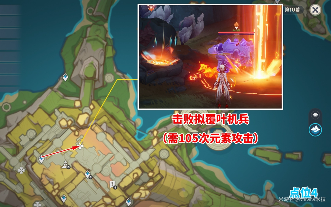 随后跟随任务指引,击败拟覆叶·夸恩因(此处元素护盾需要40次元素攻击才可击破),即可获得成就
