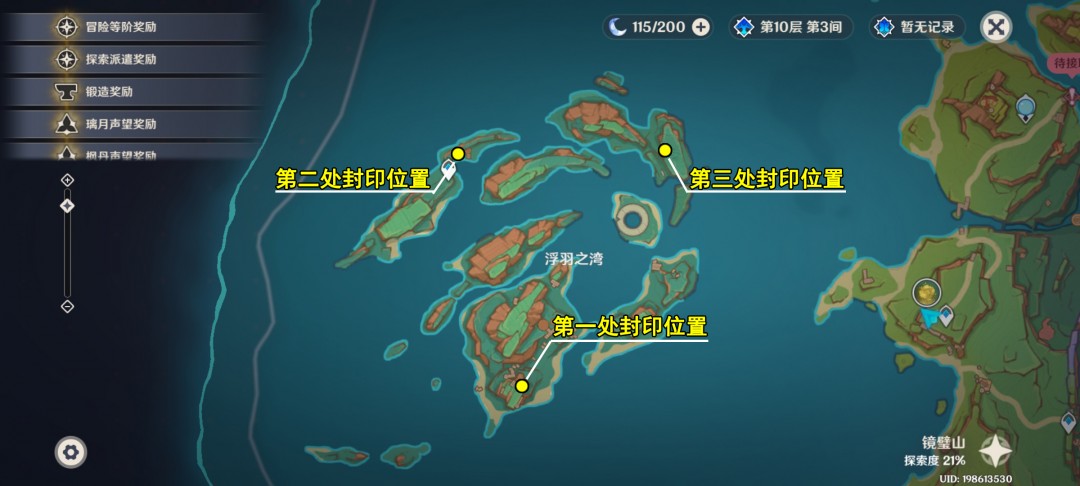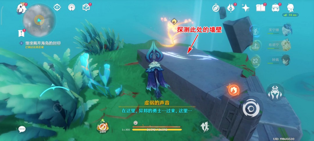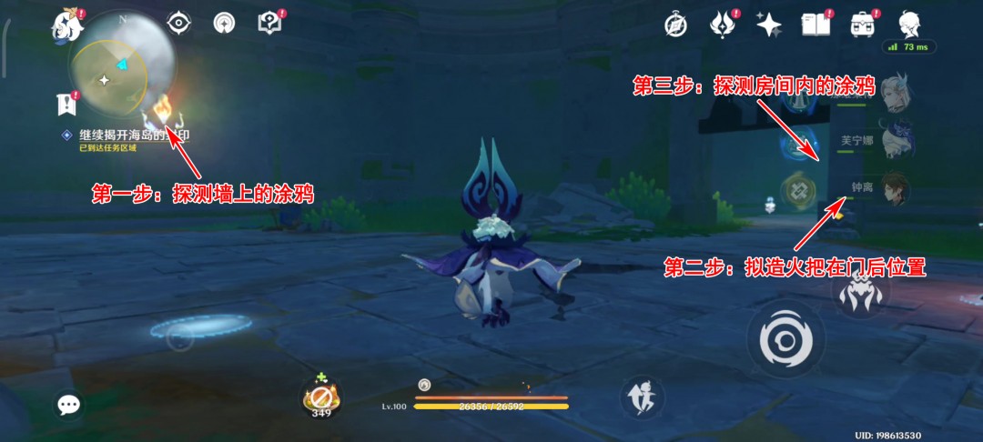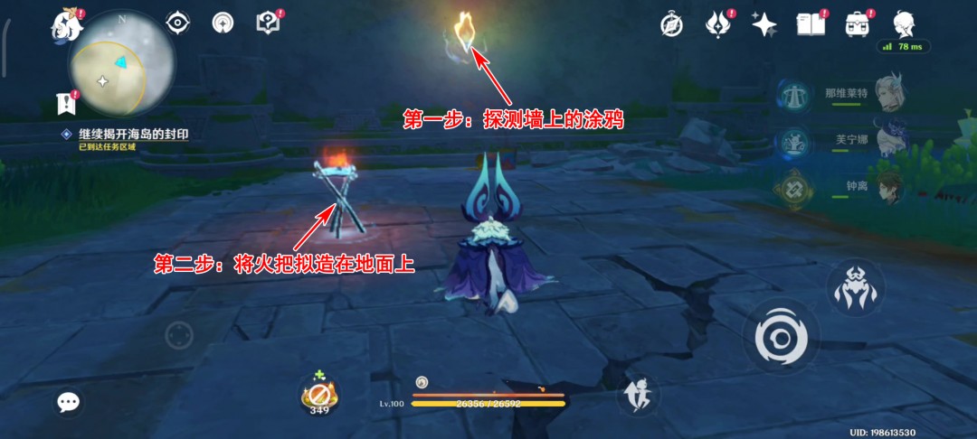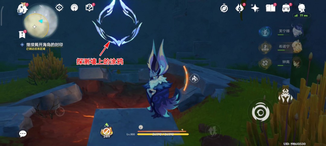 探测涂鸦后,跟随任务指引依次完成下图三个位置封印的解谜。