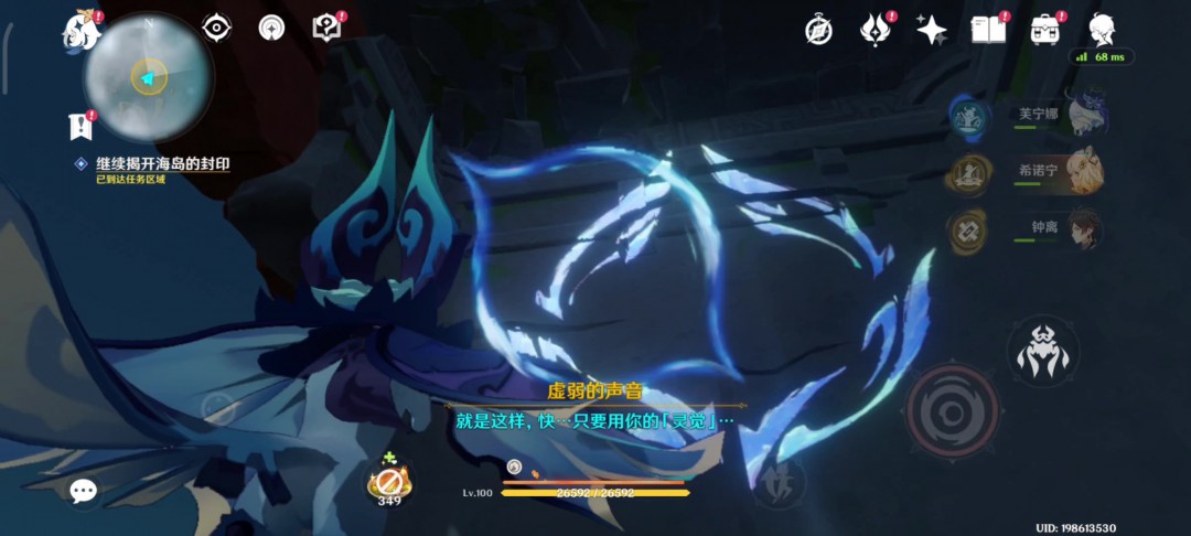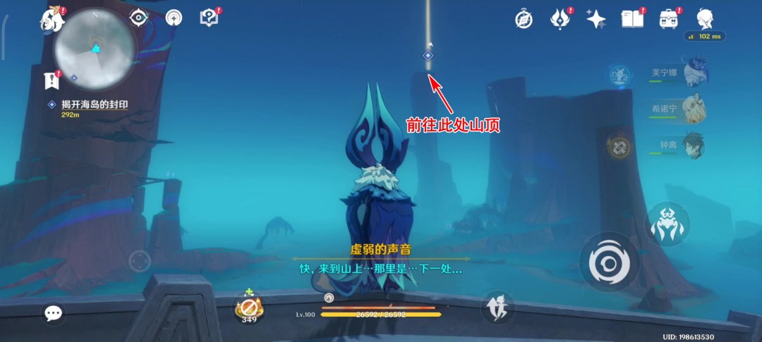 深入封印内部后直走,来到大灵显化身附近。击败魔物化作的大灵显化身,即可进入剧情。